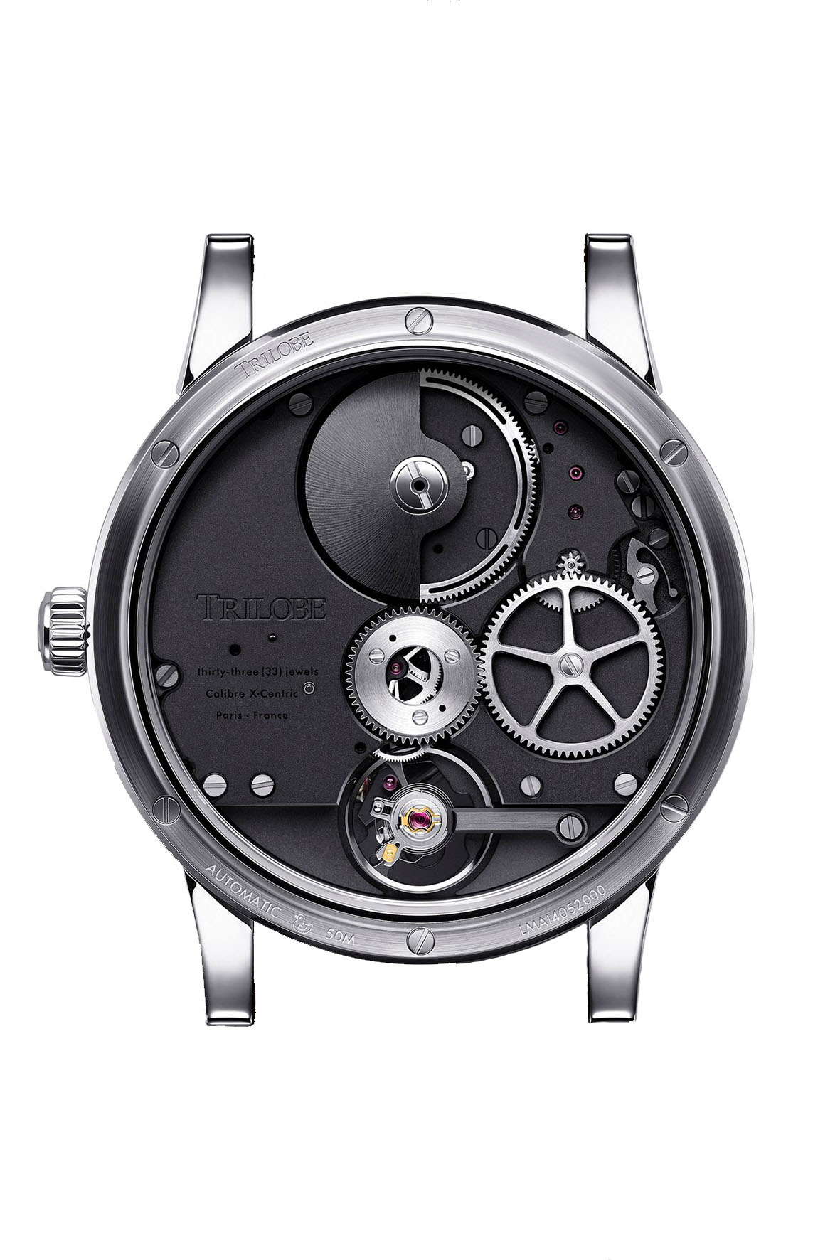 Trilobe has entrusted its manufacture and partner of La Chaux-de-Fonds (Le Cercle des Horlogers) with the task of architecturing its X-Centric calibre. Its mission was to combine the technical challenge with an “artistically offbeat” approach, while perpetuating Swiss watchmaking excellence.