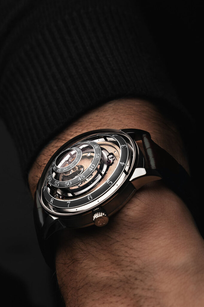 2 November 2023“In watchmaking, the idea of visualizing time in a completely alternative, unique way has been with me since the beginning. I felt the need to free time from the empirical research and make its display fluid instead of being fixed on the dial”.