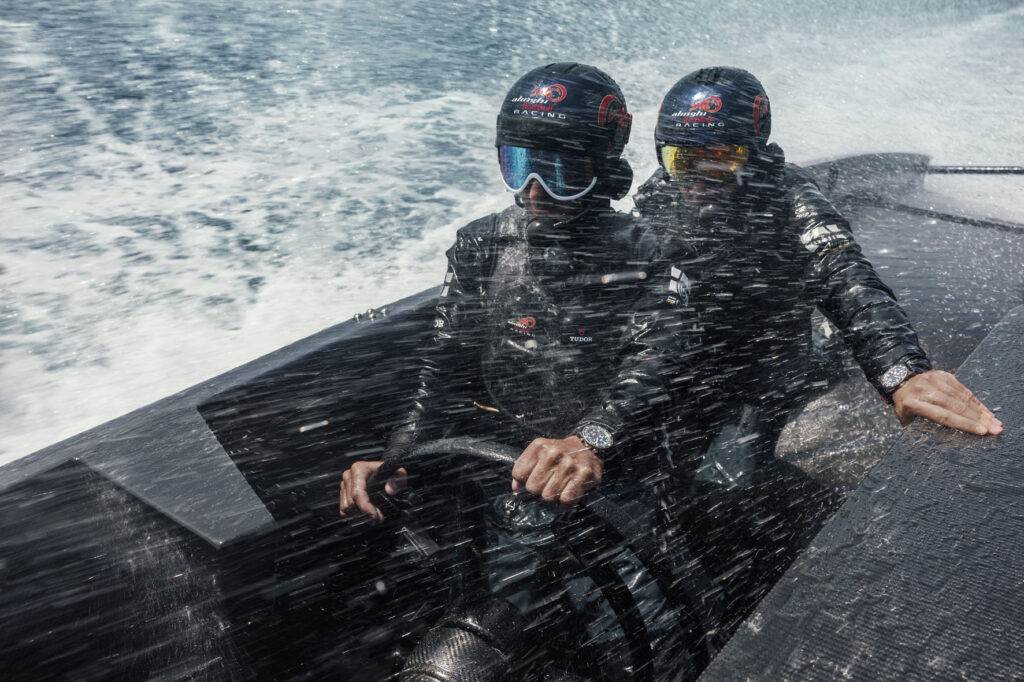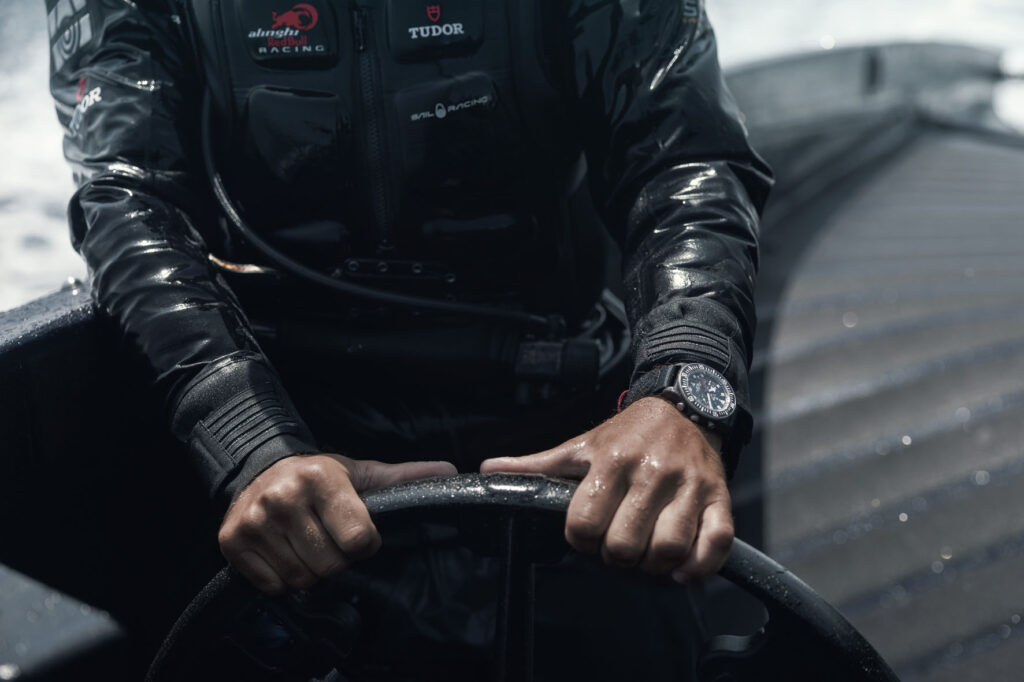 Wearing the same hue of the hull of the AC75, the matte dials put legibility first and foremost. While both dials are finished in Alinghi Red Bull Racing Team Blue with a red-tipped second hand, the Chronograph model features red accents around the counters to further hint at the aesthetics of the AC75, namely the red stripes on the hull. On the 45° angled rehaut, between 10 and 2, a subtle “Alinghi Red Bull Racing” mention overarches the dial’s layout. The signature square hour-markers and “Snowflake” hands, designed back in the sixties by TUDOR to offer larger luminous surfaces and thus improve legibility, are fashioned from luminescent ceramic composite for optimal legibility in challenging conditions.