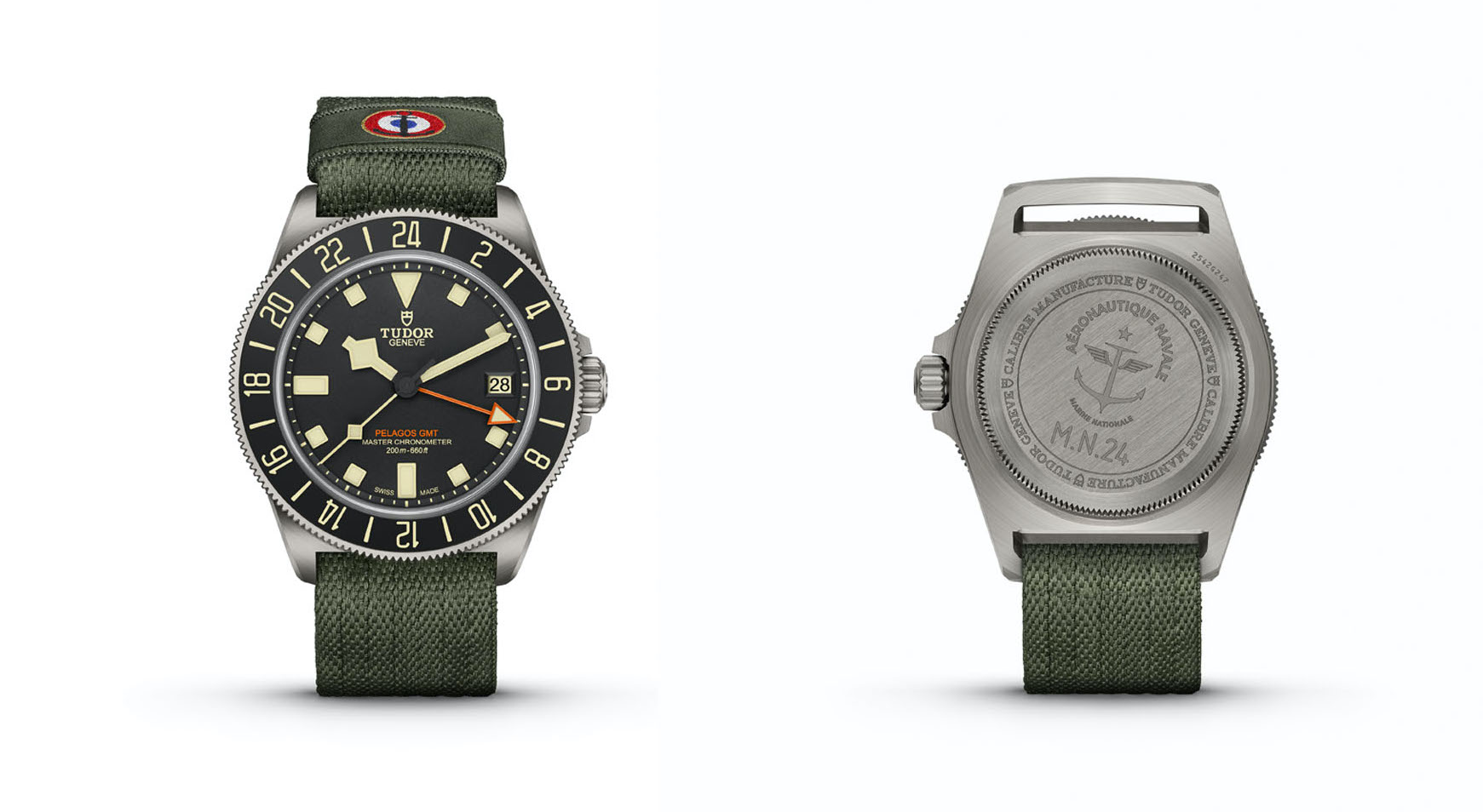 And to highlight the Pelagos FXD GMT’s official commission with the French Navy and its aviation arm, its grade 5 titanium case back bears the logo of the Aéronautique navale (French Naval Aviation) composed of a winged anchor topped with a star, as well as a historically inspired engraving of “M.N.24” for “Marine nationale 2024”indicating the year of production of each batch of the watch.