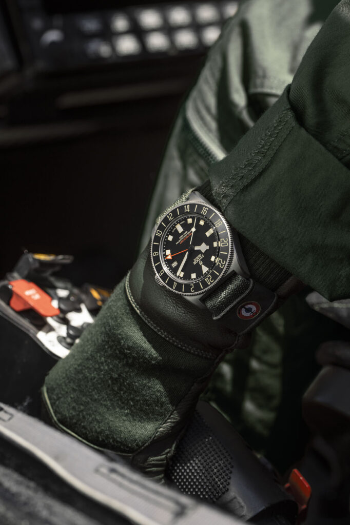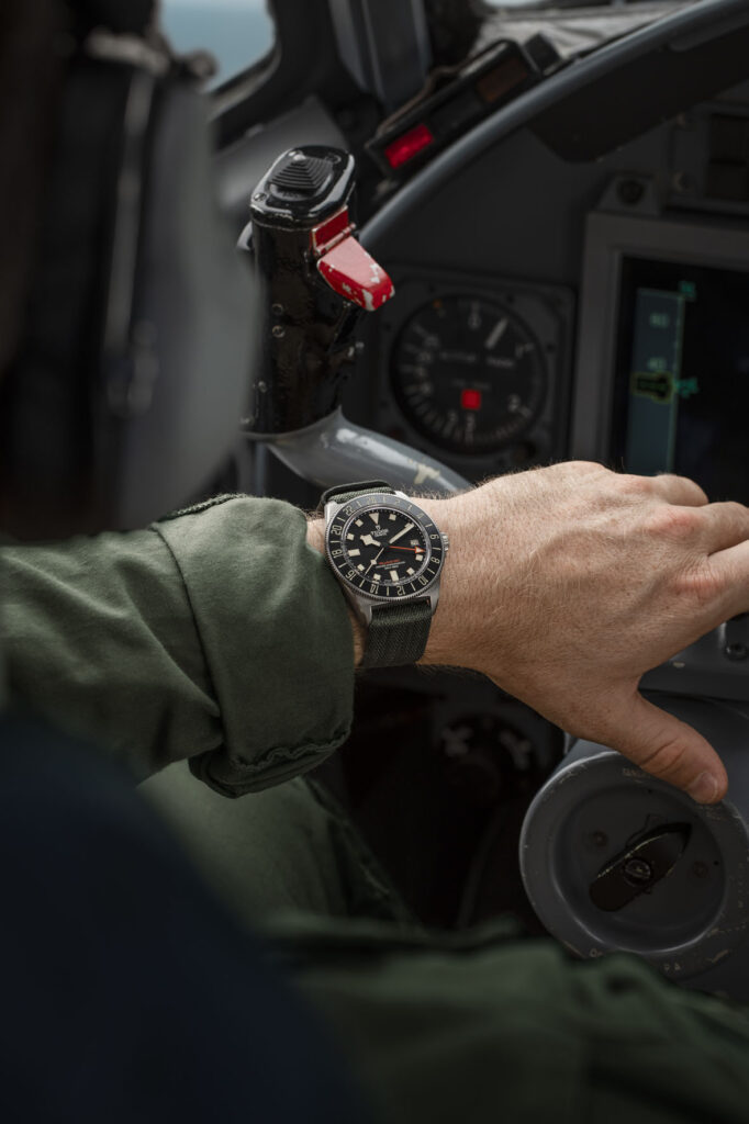 In 2021, reviving this historic collaboration, TUDOR released a new technical watch for underwater navigation developed in conjunction with the French Navy’s combat swimmers. Based on a set of specifications that are as precise as they are demanding, the Pelagos FXD model introduced many functional features that were new to TUDOR, including its distinctive fixed strap bars machined into the main body of the 42mm titanium case for increased robustness and reliability. Shaped as an extension of the lugs, they are key to the model’s characteristic silhouette. With the Pelagos FXD GMT, TUDOR and the French navy write a new chapter in their extensive shared history, deploying the FXD platform as a robust solution to naval aviation time-tracking needs.