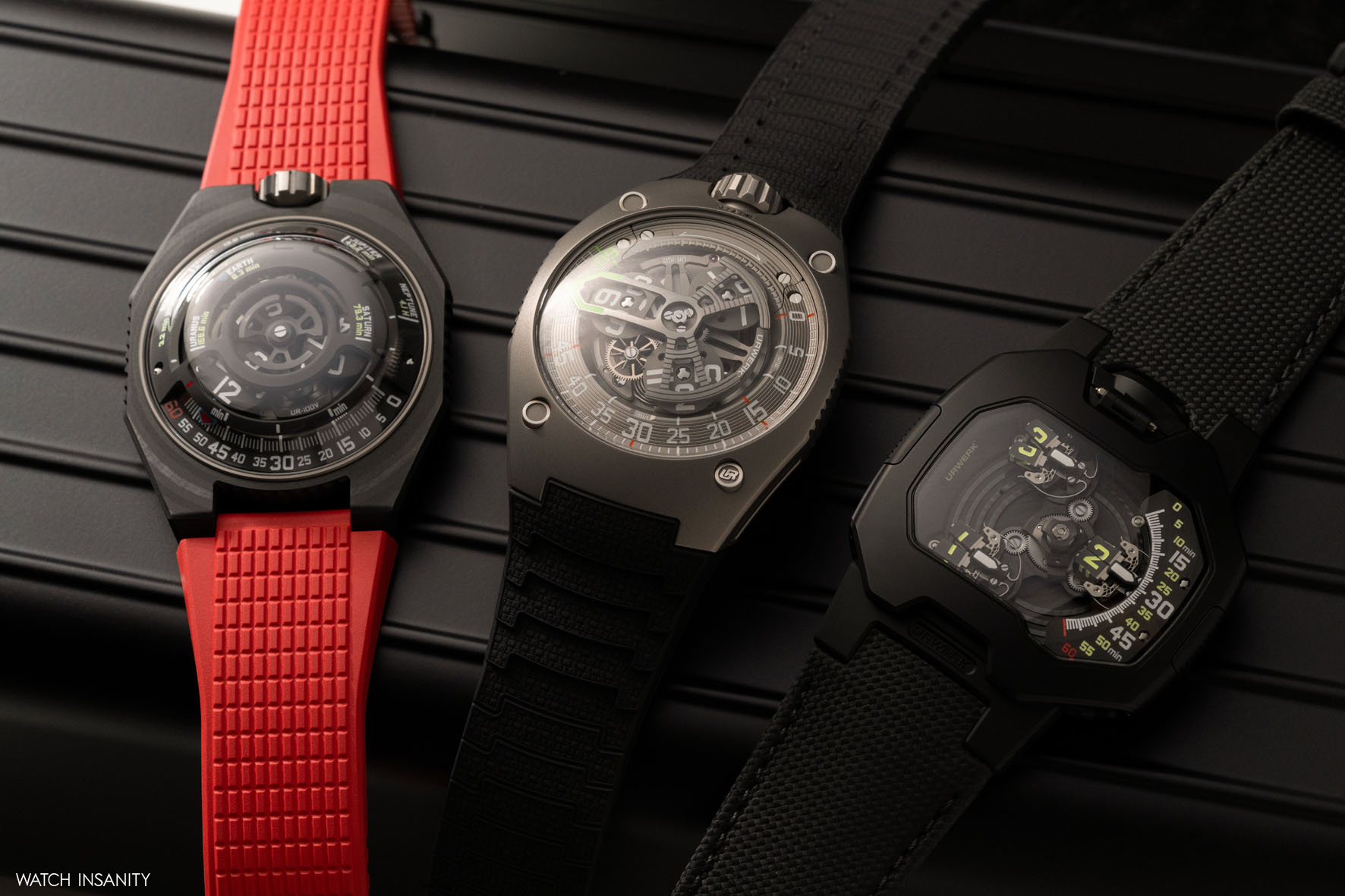 The trilogy described here is distinguished not only by its complication, aesthetics and innovation, but also by its price. The UR-100V LightSpeed costs EUR 69,490, the UR-120 EUR 117,600 and the UR-150 Scorpion EUR 94,080, excluding VAT.