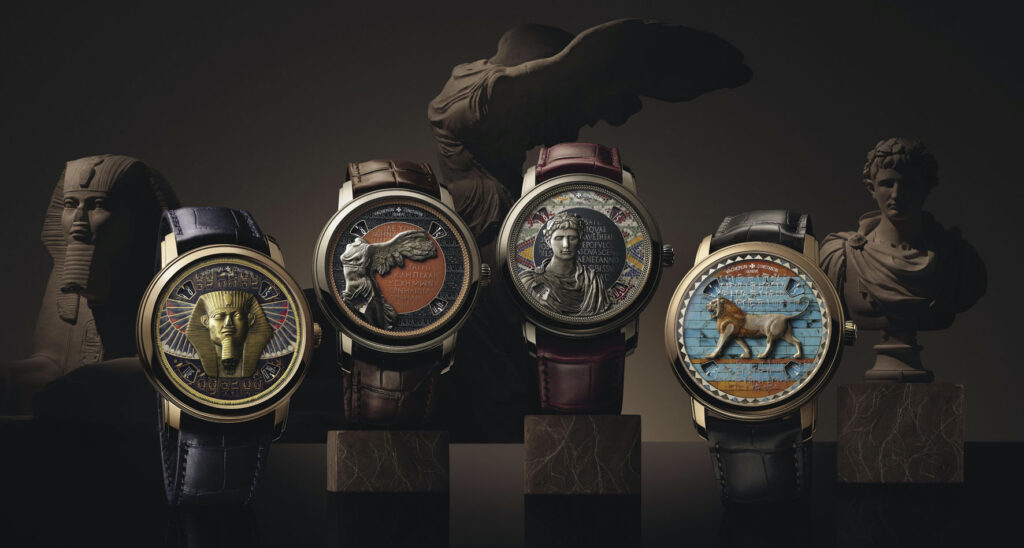 Meanwhile, Vacheron Constantin has not forgotten its commitment to supporting culture, not just watchmaking but art in general. It does so through prestigious partnerships such as those with the Louvre Museum in Paris or the Abbey Road Studios in London. With the former, the company periodically promotes cultural initiatives linked to art and restoration, and in 2022 gave birth to the ‘Homage to Great Civilisations‘ line within the Métiers d’Art collection: four limited edition watches, each inspired by an art piece in the museum and created by one of the four most important ancient civilisations.
