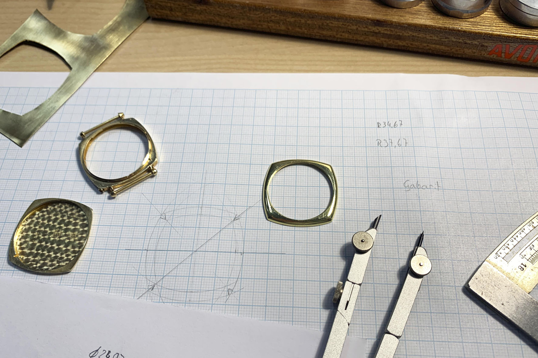 They began by disassembling and examining every single component of the original 11-ligne Calibre Nouveau powering the original model. Apart from the bridges and mainplate which had to be recreated, the Restoration workshop’s stocks proved to be a goldmine for the artisans who thereby had access to all the necessary blank parts. This involved extremely laborious research, since a vintage case could contain an infinite number of components, all different in terms of size and shape. In order to identify them one by one, the first stage consisted in taking the measurements and dimensions of each of the 115 components of the original movement. This meticulous work of observation and comparison subsequently led watchmakers to make plans and mock-ups of the calibre, a particularly delicate task requiring extremely complex sizing calculations.
