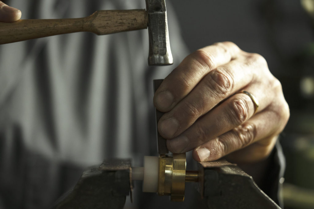 Some period components were available in the stocks of the Restoration workshop, such as rough blanks of the crown and hands. Others had to be entirely recreated, starting with the 31.5 mm case, according to the dimensions of the original American 1921. It was crafted by a Restoration workshop goldsmith from the specific gold alloy used for the historical model (18K 3N yellow gold), identified with the help of a spectrometer in order to reproduce its exact colour. Only a laser engraving applied to the case back, for customs purposes, distinguishes the American 1921 Pièce unique watch from its ancestor.