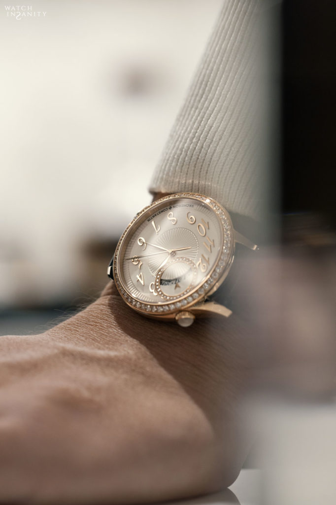 The self-winding and moon phase steel versions come with a polished metal bracelet, while the pink-gold ones are offered with three interchangeable leather straps.