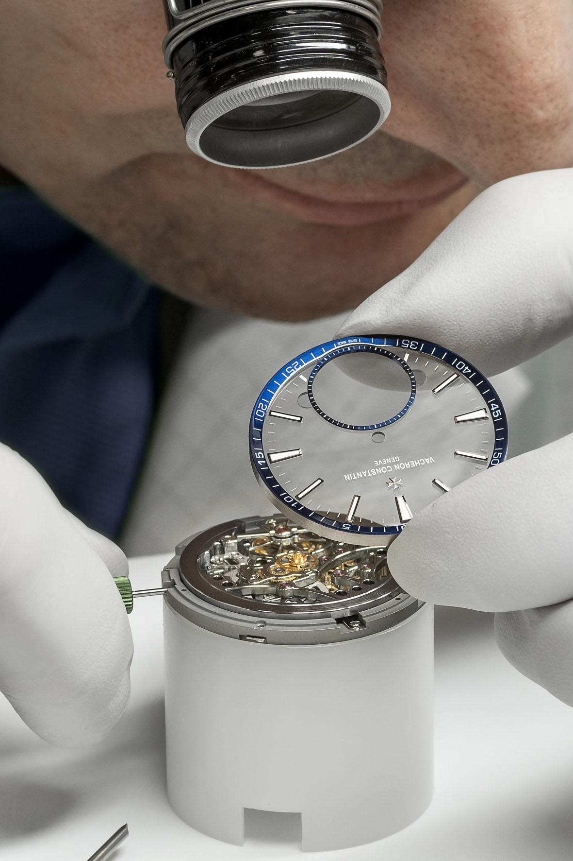 Particular care has been devoted to the finishing of the 42,5 mm case and bracelet. The bezel ring is circular satin-brushed on the 18K 5N pink gold version and sandblasted on the Grade 5 titanium iteration. The case and bracelet of both models are vertically satin-brushed with polished angles on the bracelet links, whose shape is inspired by Vacheron Constantin’s Maltese Cross emblem.