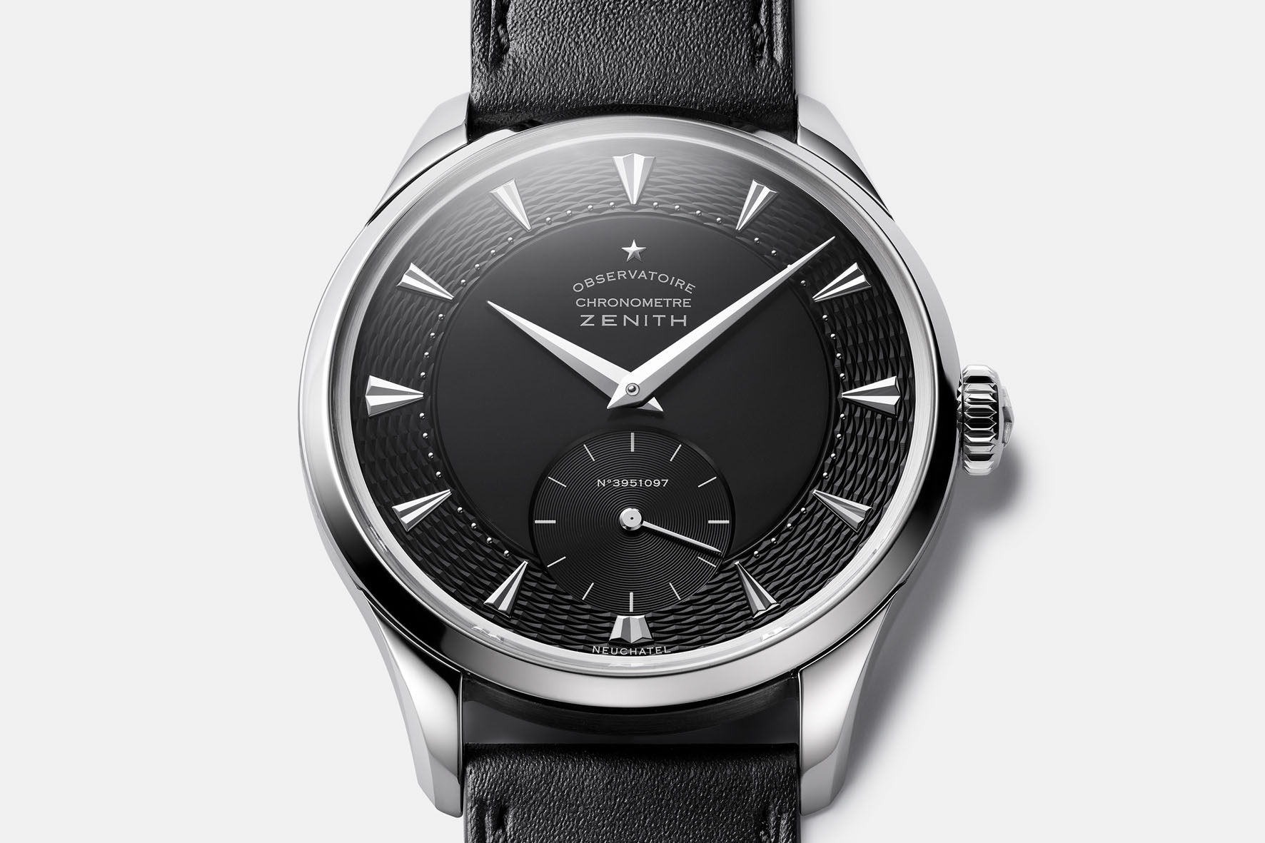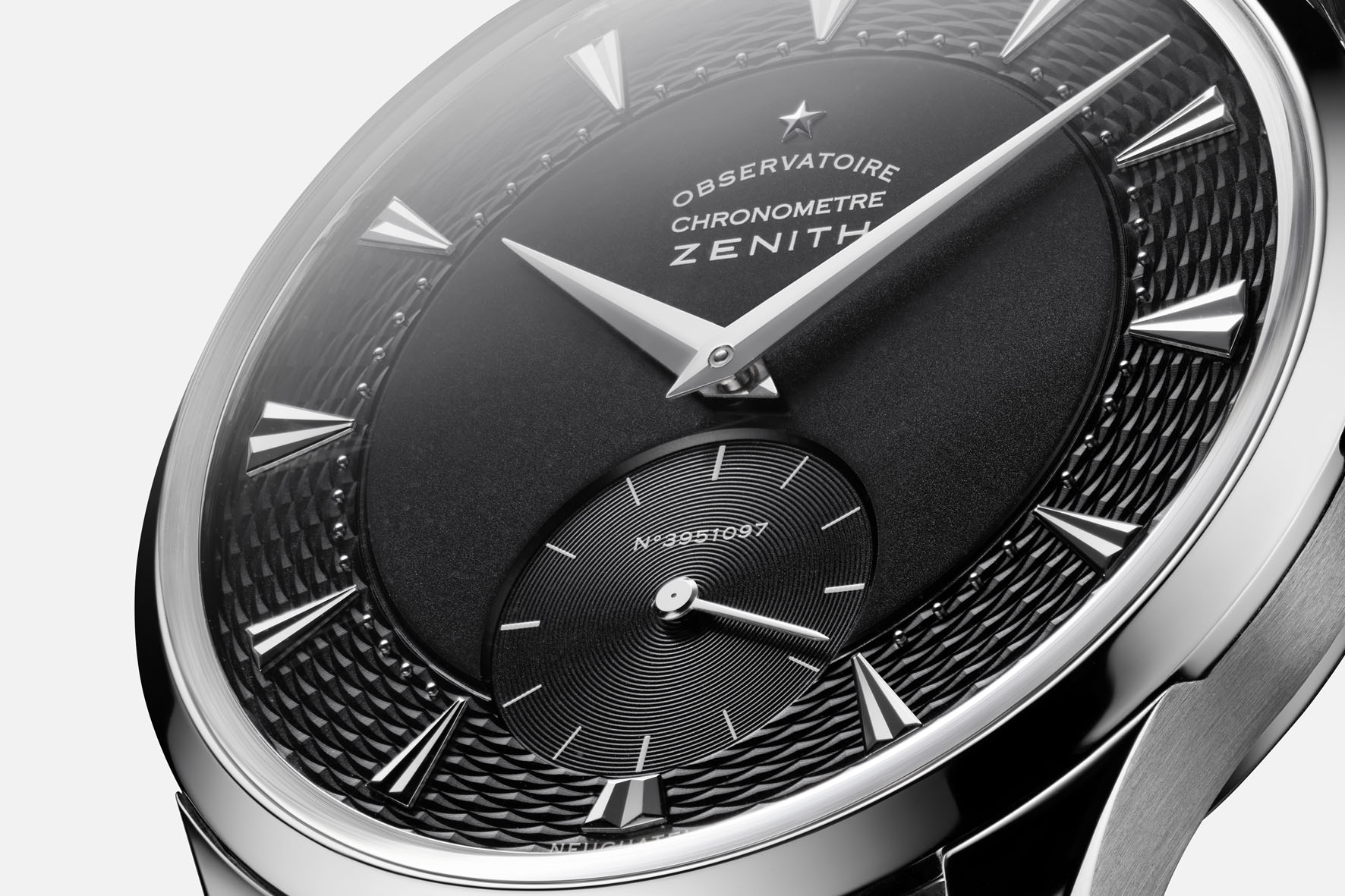 True to its original era, the Calibre 135 Observatoire is inspired by past commercial wristwatch versions of the Calibre 135, yet unlike anything ever made in the past, the Observatoire Limited Edition draws inspiration from several 1950s references by combining the most emblematic details with contemporary accents. The 38mm platinum round case features tapered lugs that seamlessly fit under the bezel, as well as an oversized notched crown emblazoned with the modern Zenith star logo.