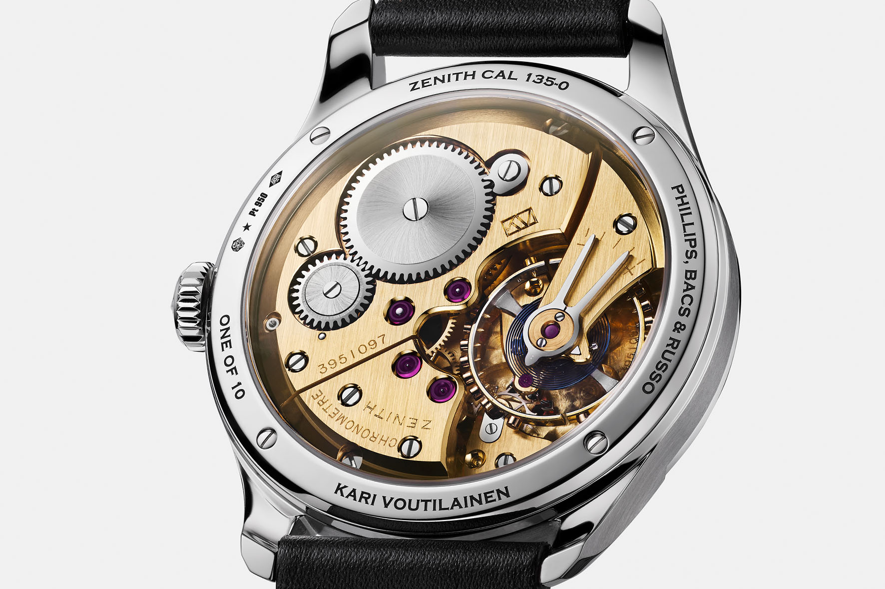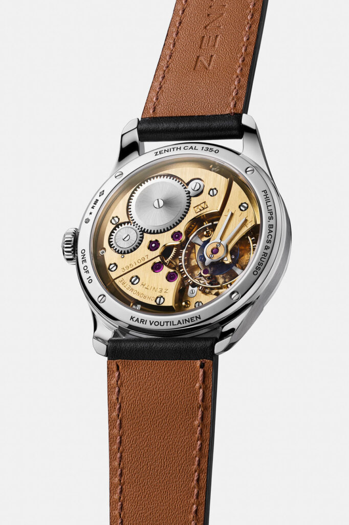 3 June 2022Geneva, June 2nd, 2022: A monumental collaboration in watchmaking is born. ZENITH makes its most awarded movement from the golden age of chronometry competitions available to acquire for the first time ever. An idea initiated by Phillips’ Aurel Bacs and Alexandre Ghotbi, with whom ZENITH had already worked with on unique pieces and exclusive editions, Phillips in Association with Bacs & Russo invited renowned independent watchmaker Kari Voutilainen to restore and hand-decorate a batch of ZENITH Calibre 135-O movements, all of which took part and won in observatory chronometer competitions. The result is a contemporary chronometer produced in a series of 10 pieces and sold exclusively by Phillips in association with Bacs & Russo.