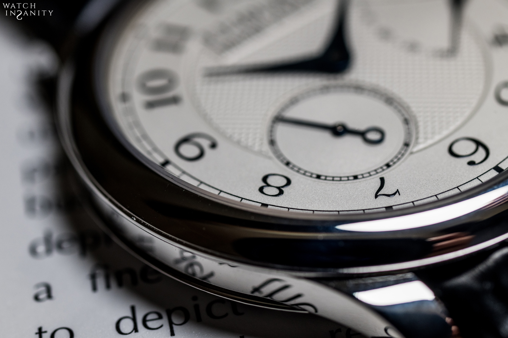 Per la prima volta il Maestro ha creato un quadrante in argento Guilloché abbinato alle inconfondibli lancette azzurrate, che indicano ore e minuti, per la prima volta poste al centro del quadrante. I piccoli secondi sono posizionati a tra ore 7 e 8, e la riserva di carica a ore 3.