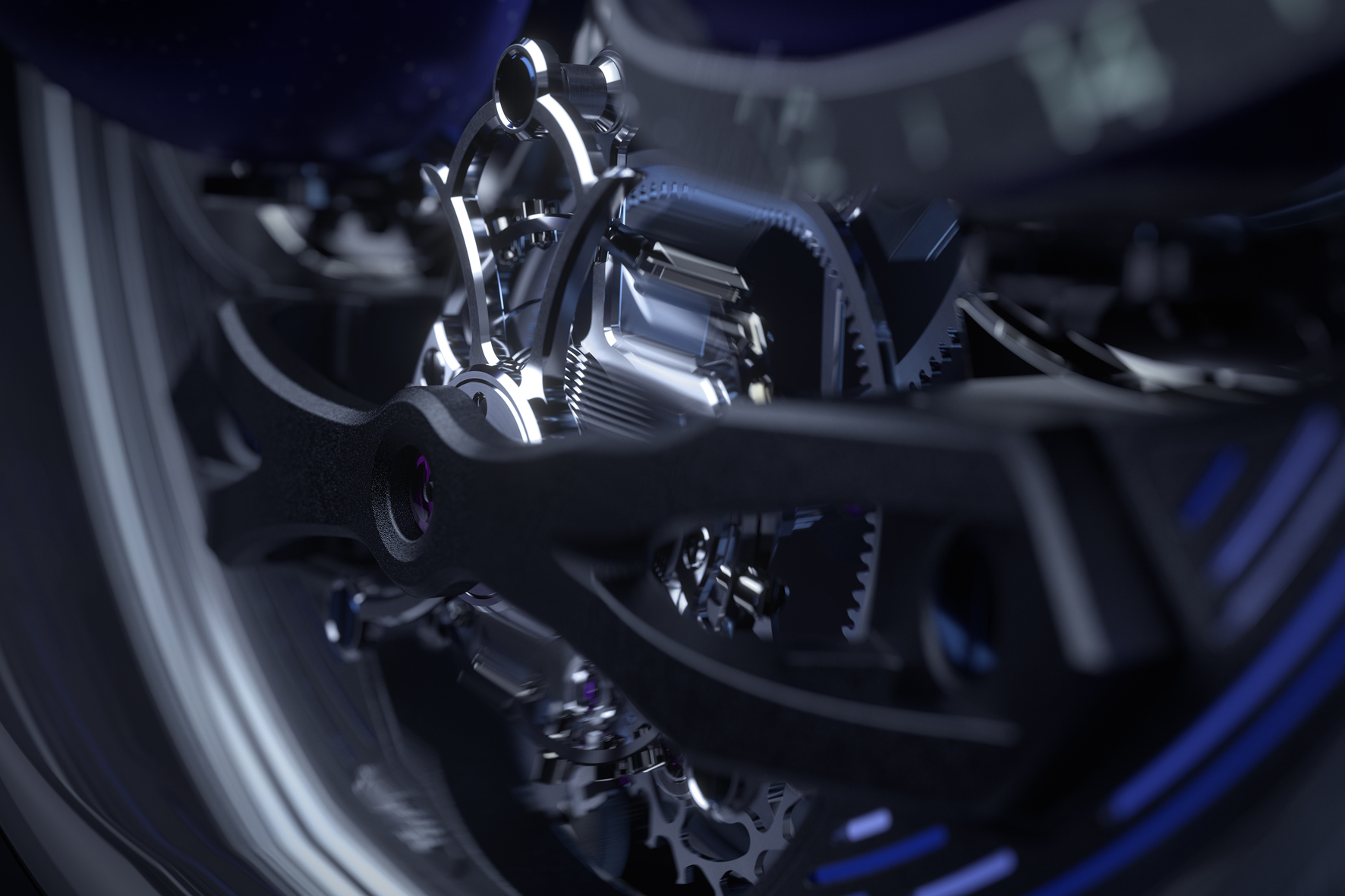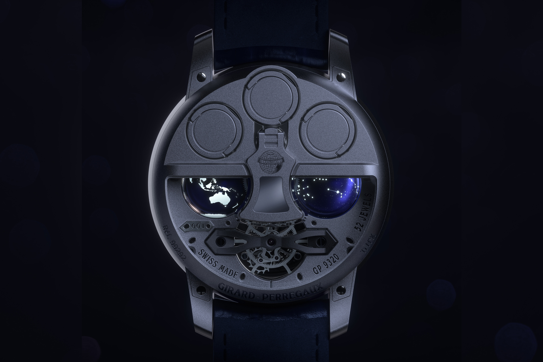 Con i suoi 48 millimetri di diametro, la cassa del Cosmos è un mondo a sé. Scolpita nel titanio micropallinato, essa delimita il proprio universo. Il vetro zaffiro è un glassbox, vetro bombato che funge da cannocchiale astronomico. Sotto questa lente non deformante batte il calibro Tourbillon GP09320 a carica manuale con 60 ore di riserva di marcia.