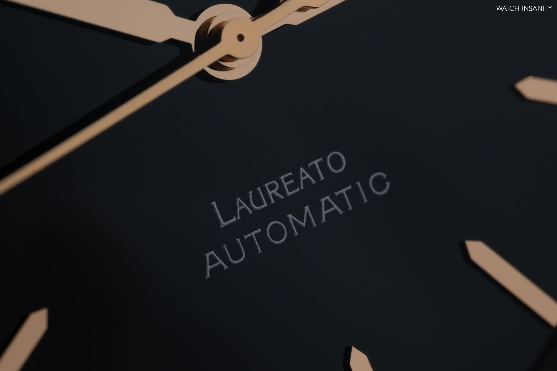 Questo carattere si esprimeva direttamente nel design del Laureato, che univa diverse forme armonizzandole in un aspetto subito riconoscibile. A partire dalla lunetta ottagonale poggiata su un anello circolare, a sua volta posto sopra a una cassa angolare di forma tonneau. Malgrado le linee geometriche e nette, la cassa del Laureato si distingue da sempre per il suo carattere delicato, che alterna superfici con finitura lucida e satinata.