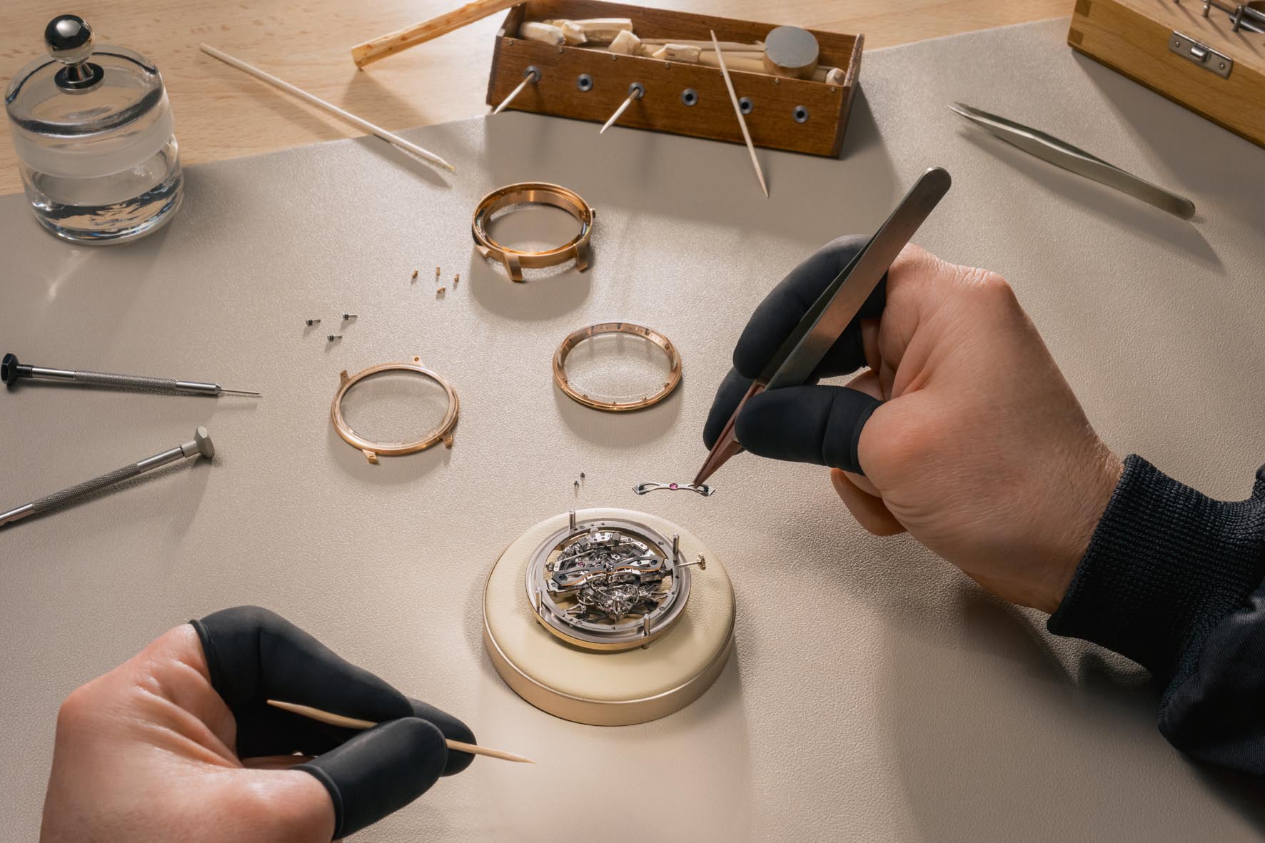 Come per esempio nelle collezioni Opera I e II, dotate di un carillon Westminster che riproduce la melodia a quattro note: Sol, Re, Mi e Do. Si tratta di orologi che richiedono competenze e know-how padroneggiati solo dalle grandi Manifatture. Il movimento, estremamente complesso, deve essere assemblato, testato, regolato e smontato più volte senza danneggiarne i componenti.