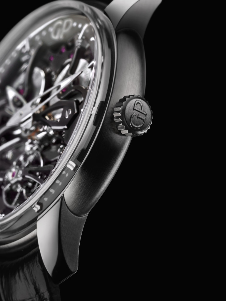 All’interno di questo spettacolo orologiero, il movimento automatico Gp08400 forma un tutt’uno con la cassa in titanio 45mm, impermeabile sino a 30 metri e dotata di cinturino in alligatore nero con tripla fibbia pieghevole. Questo movimento, perfettamente simmetrico grazie al posizionamento del micro-rotore lungo l’asse del bariletto che garantisce un’autonomia di 50 ore, è stato concepito per catturare lo sguardo di chi lo ammira. La sua architettura esaltata le finiture contemporanee come la sabbiatura, il trattamento NAC della platina e il rivestimento PVD dei ponti curvi. Questo insieme e il design grafico sono arricchiti dal fascino ipnotico trasmesso dal grande bilanciere a ore 6.