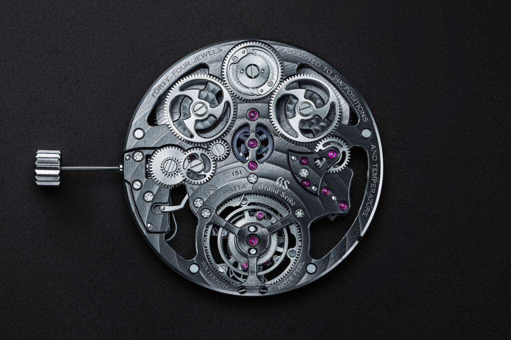 Nel 2020, Grand Seiko ha presentato il “T0 Constant-force Tourbillon”, un concept movement che integrava questo meccanismo brevettato. Per dare vita a questo concept in un orologio finito, c’era bisogno della dedizione completa di un team che comprendesse designer, ingegneri e artigiani fidati per il montaggio e la messa a punto del movimento e della cassa. Ciascun singolo componente dei 340 che costituivano il calibro è stato riesaminato e, se necessario, riprogettato per la produzione. Il risultato è il Calibro 9ST1.