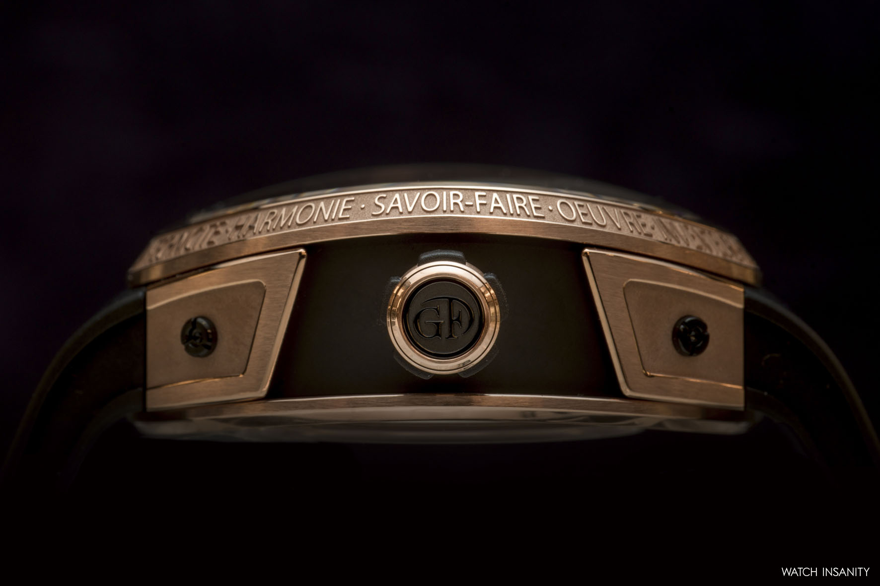 Tra i vari fil rouge che accompagnano il lavoro di Robert Greubel e Stephen Forsey quello primario è legato al tourbillon – inventato come sanno tutti da Abraham-Louis Breguet, con brevetto del 26 giugno 1801 – che i maestri di La Chaux-de-Fonds hanno completamente reimmaginato a suon di soluzioni strabilianti che lasciano a bocca aperta e ci fanno sussurrare un estatico “wow”, come di fronte al Tourbillon 24 Secondes – alloggiato tra ore 12 e ore 2 nell’orologio che presentiamo in questo articolo – con la relativa gabbia inclinata a 25° e che compie una rotazione completa per l’appunto in 24 secondi; o come con il Double Tourbillon 30° o il Quadruple Tourbillon. Il significato meccanico di questo strano organo regolatore ormai è arcinoto – migliora la precisione di marcia contrastando gli effetti della forza di gravità sul movimento, eccetera, eccetera – ma è altrettanto arcinoto che probabilmente lo si acquista più che altro per la contemplazione estetica di questo ipnotico esercizio di assoluto savoir-faire orologiero.