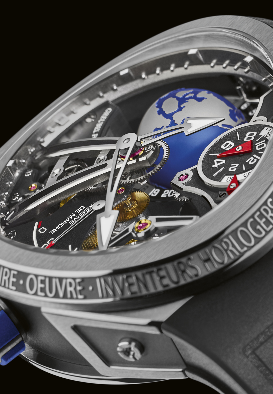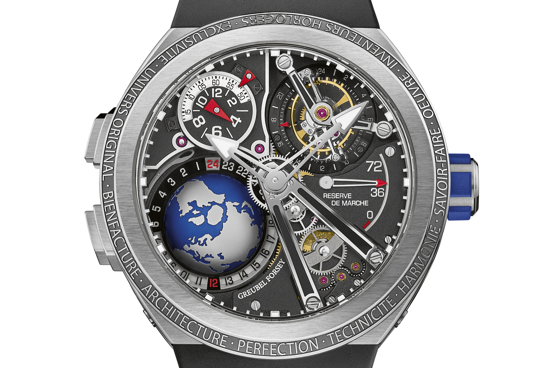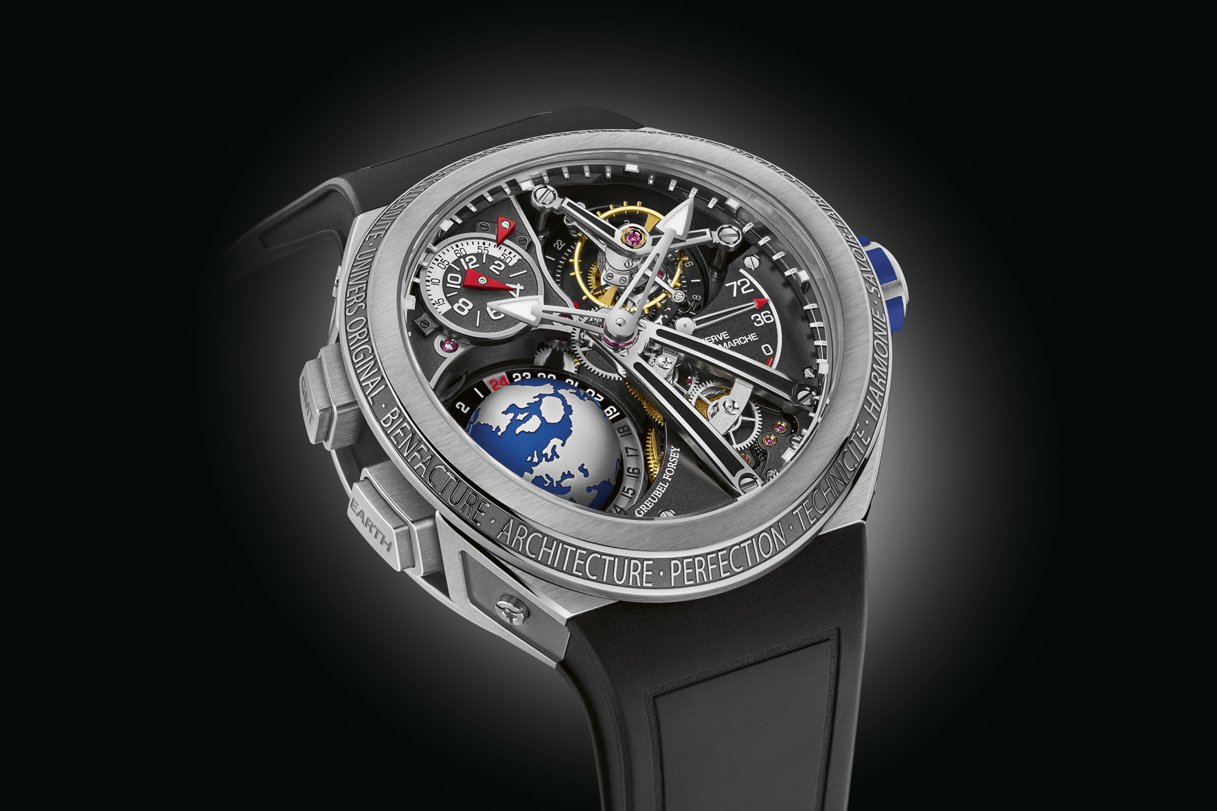 5 Dicembre 2019Robert Greubel e Stephen Forsey presentano il nuovo GMT Sport. Un segnatempo con cassa modellata in titanio, leggera e ultra-resistente, con lunetta ovoidale e anse integrate che esaltano il nuovo movimento. Impermeabile fino a 100 metri, il GMT Sport si distingue come il modello più sportivo della Maison. Il movimento è stato costruito ex novo – dal ponte ad arco sospeso per la visualizzazione di ore e minuti, all’esclusivo scrigno che pone in risalto il Tourbillon 24 Secondes e l’ora universale con globo tridimensionale.