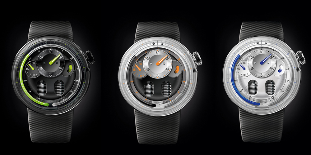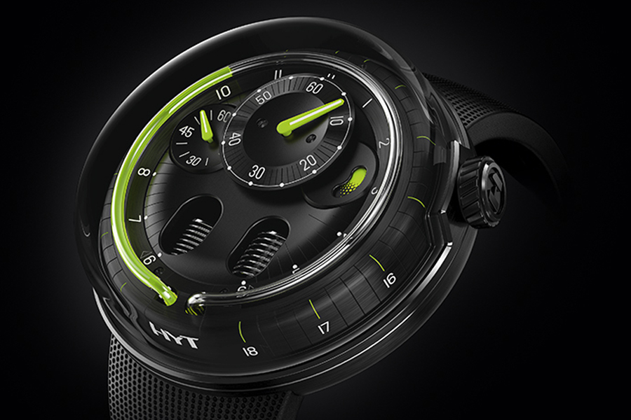 Per la nuova collezione Ho, HYT ha deciso di ripensare il suo design e tornare all’essenziale, svelando solo una parte per cogliere meglio la straordinaria complessità dei sistemi interni. Una piccola parte dei soffietti appare da aperture ovoidali praticate sulla superficie del quadrante. Il disegno minimalista del pezzo, realizzato in titanio, concentra l’attenzione sulla dimensione artistica e spettacolare della visualizzazione fluidica.