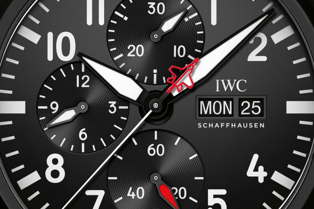 Limitato a 1500 esemplari, il nuovo modello si presenta con cassa da 44 mm in ceramica nera di ossido di zirconio, e cassa interna in ferro dolce per la protezione dai campi magnetici. Il fondello e i pulsanti del cronografo sono in Ceratanium, recente innovazione degli ingegneri IWC. Si tratta di un nuovo materiale leggero e resistente come il titanio e allo stesso tempo duro e inscalfibile come la ceramica. Grazie alla combinazione di ceramica e Ceratanium, il cronografo si distingue per il design interamente nero opaco. A completare il look “jet black” dell’orologio, sul quadrante nero con lancette nere torna a volare il tanto amato jet rosso della lancetta dei secondi del cronografo abbinato alla lancetta dei piccoli secondi rossa.