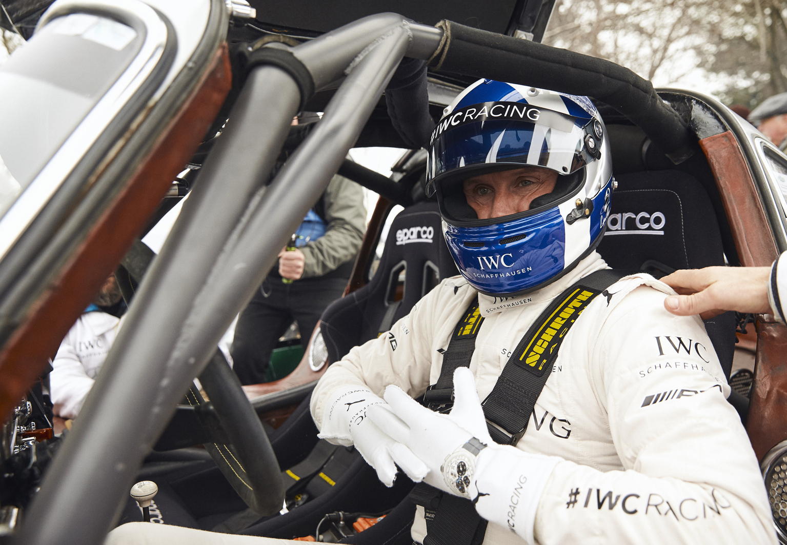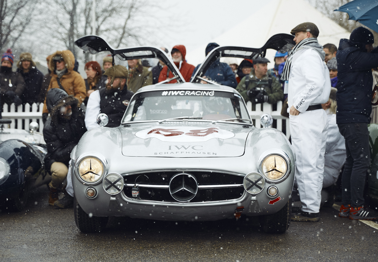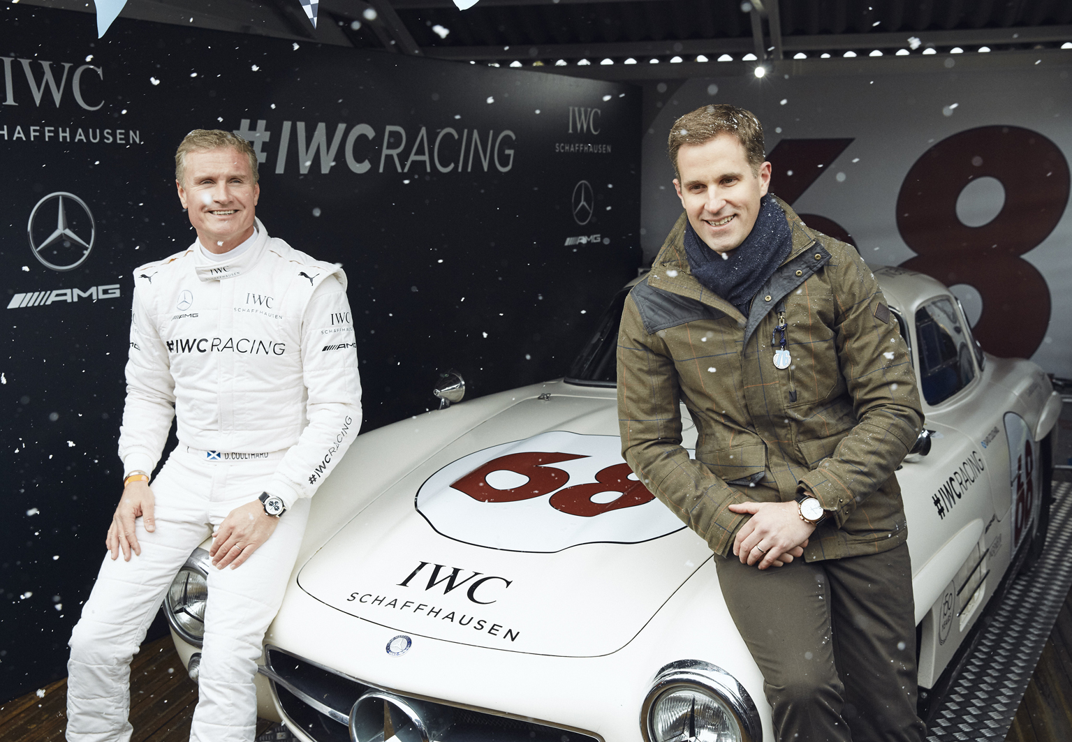L’indomani, IWC Schaffhausen ha presentato non solo il nuovo Ingenieur, ma anche il team IWC Racing, diventando così il primo marchio di orologi a competere nelle gare di auto classiche con la propria squadra e la propria auto. Grande protagonista la Mercedes-Benz 300 SL “Gullwing”, la vettura sportiva con le porte che ricordano le ali di un gabbiano, scelta da IWC poiché prodotta tra il 1954 e il 1957, il periodo in cui gli orologiai di IWC costruirono il primo Ingenieur. Accanto all’iconica auto, il campione David Coulthard e Carmen Jordá, pilota in gara nella GP3. Coulthard ha poi debuttato il giorno successivo nella Salvadori Cup, la gara riservata alle auto sportive in forze tra il 1955 e il 1960, terminando la corsa al nono posto.