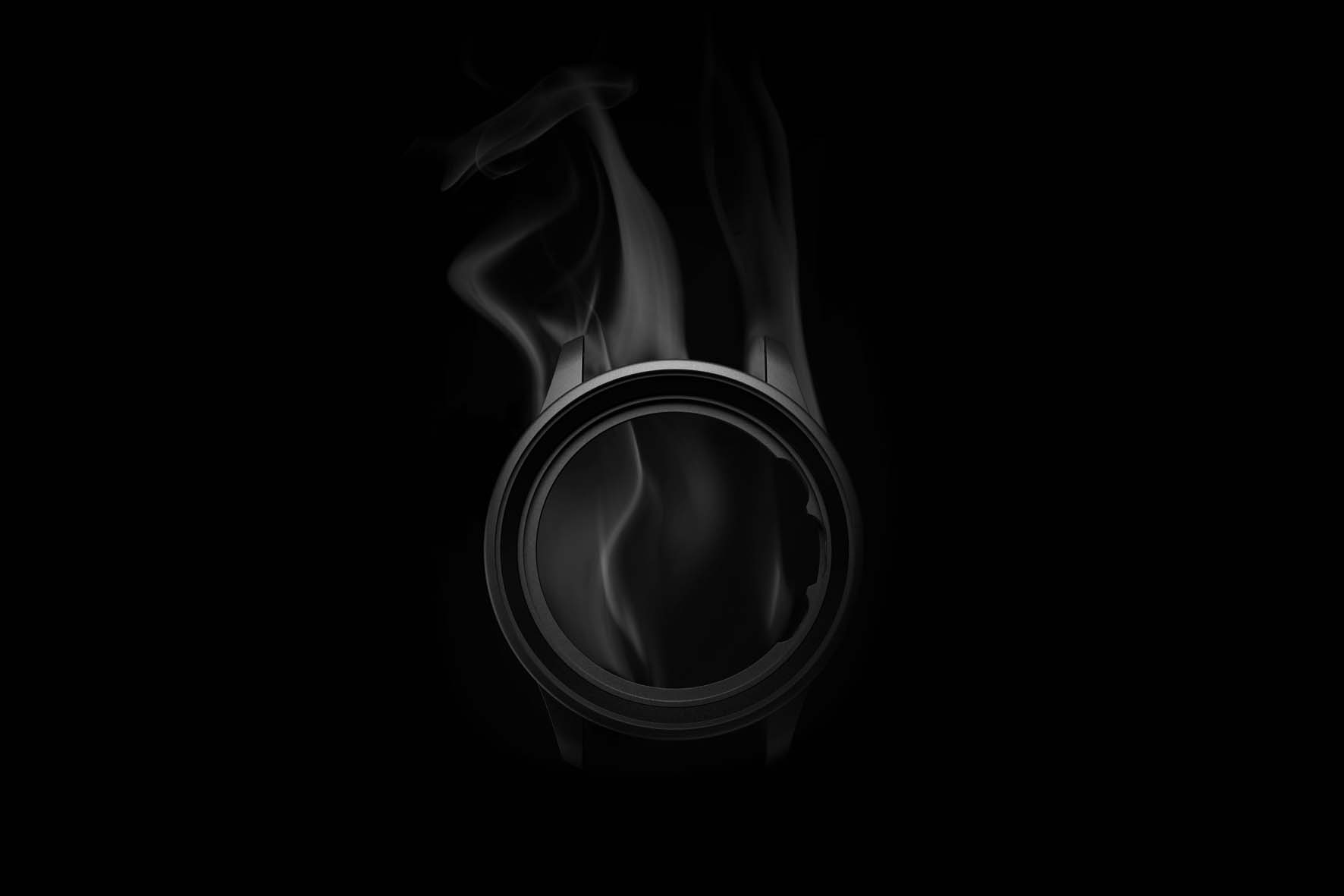 Il meccanismo cronografico con ruota a colonne garantisce una gestione fluida e precisa delle funzioni, con un feedback tattile netto alla pressione dei pulsanti. Il sistema di ricarica automatica a doppio cricchetto accumula una riserva di carica di 46 ore, assicurando stabilità e continuità di funzionamento. Il fondello trasparente in vetro zaffiropermette di ammirare il movimento, creando un contrasto interessante con l’estetica total black della cassa in Ceratanium.