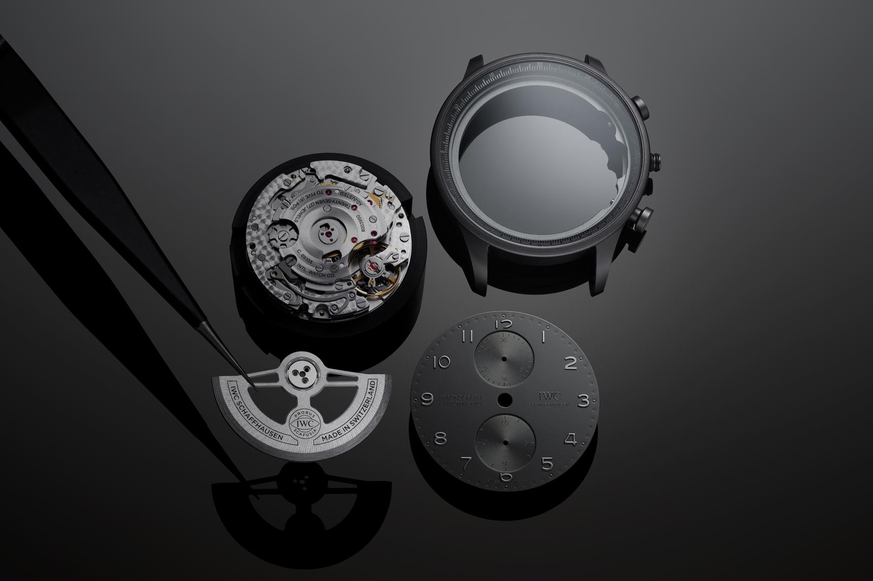 Il protagonista silenzioso dell’IWC Portugieser Chronograph Ceratanium è il Ceratanium, basato su una speciale lega di titanio e sottoposto a un processo di cottura ad alte temperature. Questo materiale combina leggerezza e robustezza del titanio con una durezza e resistenza ai graffi paragonabili alla ceramica, offrendo inoltre una caratteristica finitura nera metallica opaca. Nel Portugieser Chronograph Ceratanium 41mm, cassa, corona e pulsanti sono interamente in Ceratanium, creando un’estetica coerente e omogenea. Il nero non è un rivestimento, ma il risultato strutturale del materiale stesso.