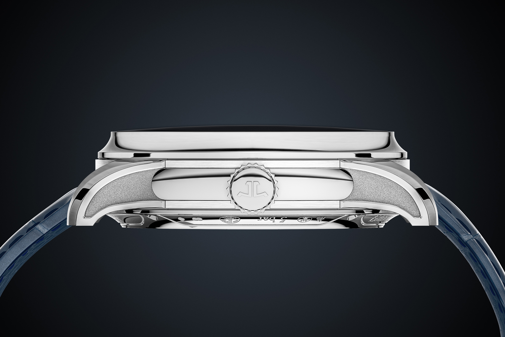 Il design dell’orologio riflette un mix di tradizione e modernità, che enfatizza il profilo rotondo della cassa 43mm in oro bianco mentre il pulsante a scomparsa della ripetizione minuti ne preserva la linearità. Lavorazioni come il guillochage, il martelage e lo smalto Grand Feu fanno parte delle tradizionali finiture haut-de-gamme che sono praticate da Jaeger-LeCoultre nel Master Grande Tradition Gyrotourbillon Westminster Perpétuel. Queste finiture sono presenti sul quadrante traforato prodotto in smalto Grand Feu di colore blu con lavorazione guilloché o argentato grené.