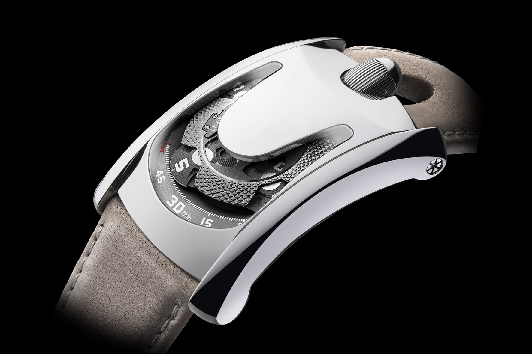 I quattro orologi saranno realizzati con casse in titanio e avranno l’indicazione delle ore vaganti tipica di Urwerk. Le 12 ore, in gruppi di tre divise in quattro bracci rotanti, passano a turno lungo una scala di 60 minuti, permettendo la lettura sia digitale che analogica del tempo. Le linee chiare della cassa riprendono quelle aerodinamiche delle auto preferite da Laurent Ferrier.