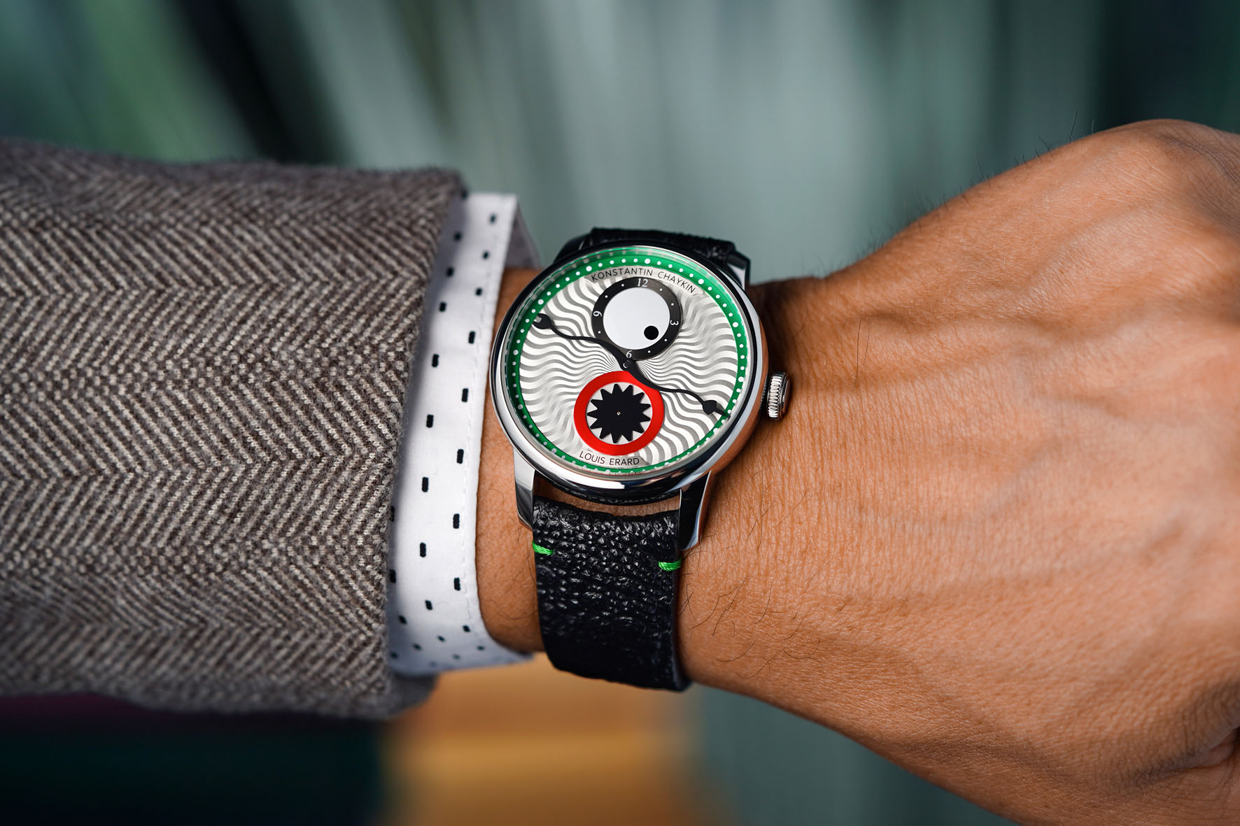 Dall’unione di Konstantin Chaykin e di Louis Erard non poteva che nascere qualcosa di unico, divertente e, per l’appunto, con una storia da raccontare. Per questo motivo Louis Erard ha “fornito in sacrificio” il suo Régulateur ad una strana creatura, lasciando carta bianca all’orologiaio russo con il solo “vincolo” dell’architettura dell’orologio caratterizzata dall’indicazione dell’ora a mezzogiorno, dai minuti centrali e dai secondi piccoli posizionati ad ore sei.