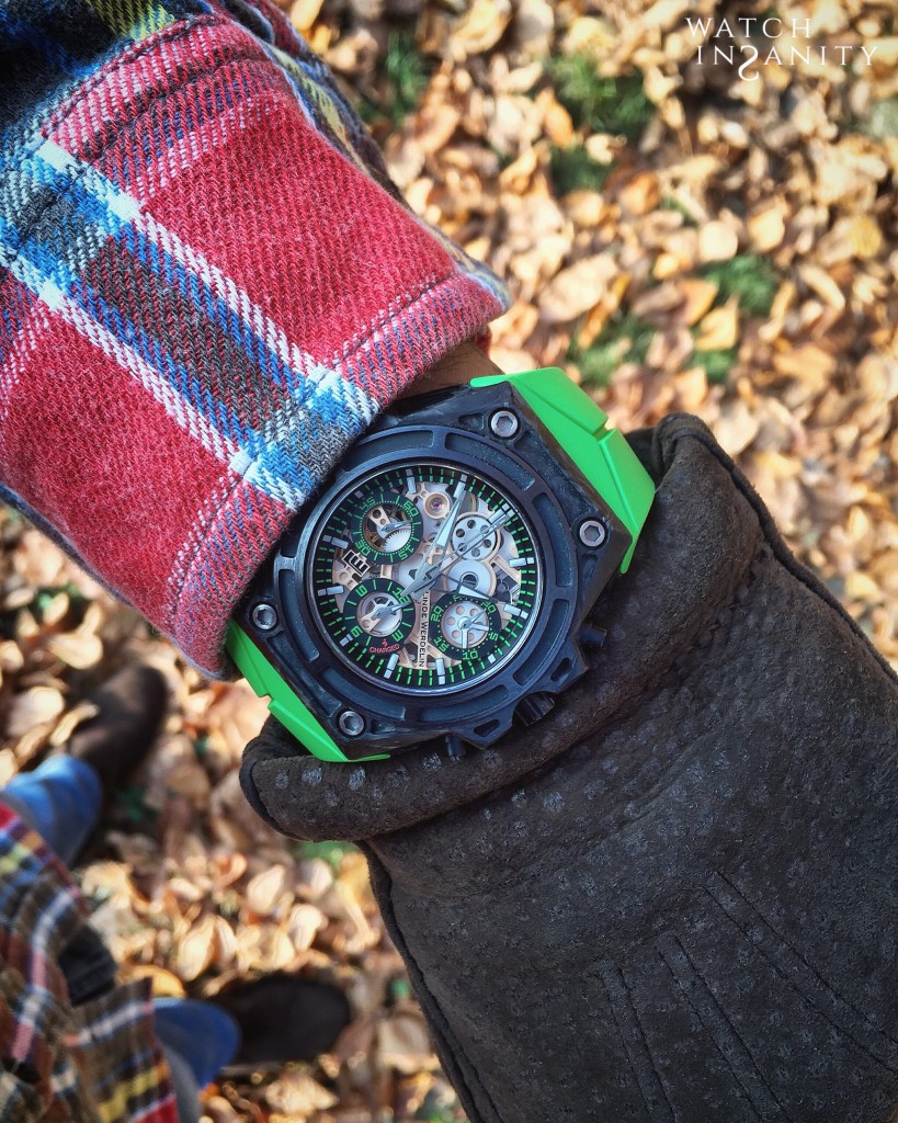 Pur essendo un cronografo dall’animo sportivo, grazie al suo design innovativo e ricercato, si abbina perfettamente a qualsiasi tipo di abbigliamento; adattandosi ad ogni circostanza di lavoro, viaggio o tempo libero. L’aggettivo che ci è sembrato più adatto per descrivere lo Spidospeed Carbon Green è “camaleontico”.