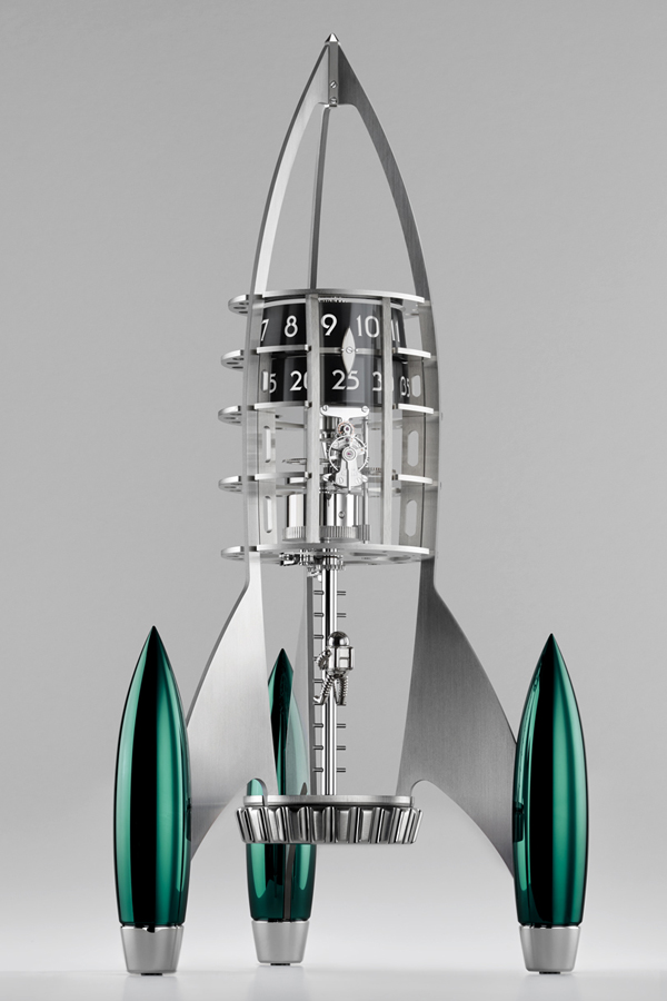 Ci sono cose che dovrebbero essere lasciate all’immaginazione… ed è proprio ciò che fa Destination Moon di MB&F. Offrendo la tecnologia sufficiente per un orologio con riserva di carica di otto giorni che assomiglia a un entusiasmante razzo uscito da un romanzo di fantascienza degli anni Sessanta, ma con tanto spazio vuoto per consentire alla nostra fantasia di immaginare i dettagli.