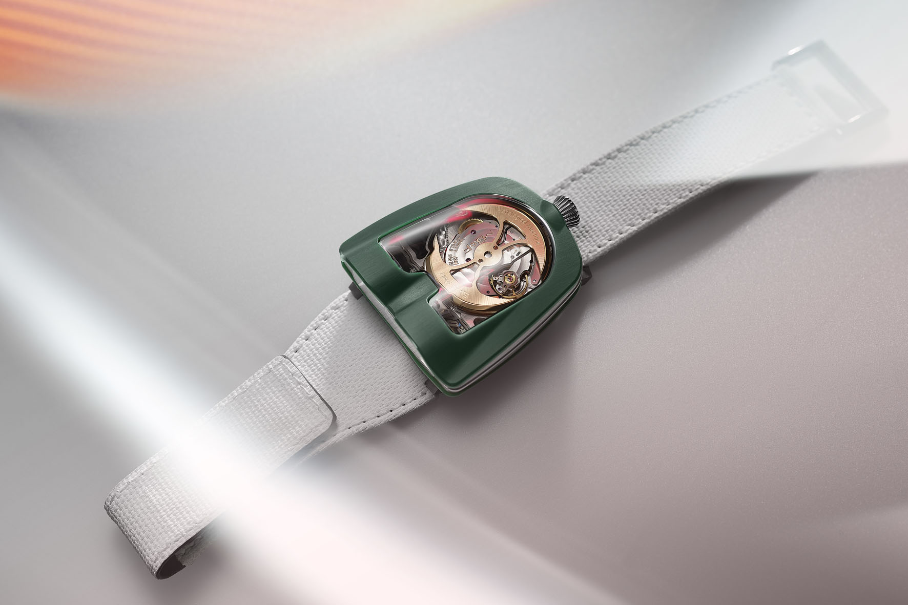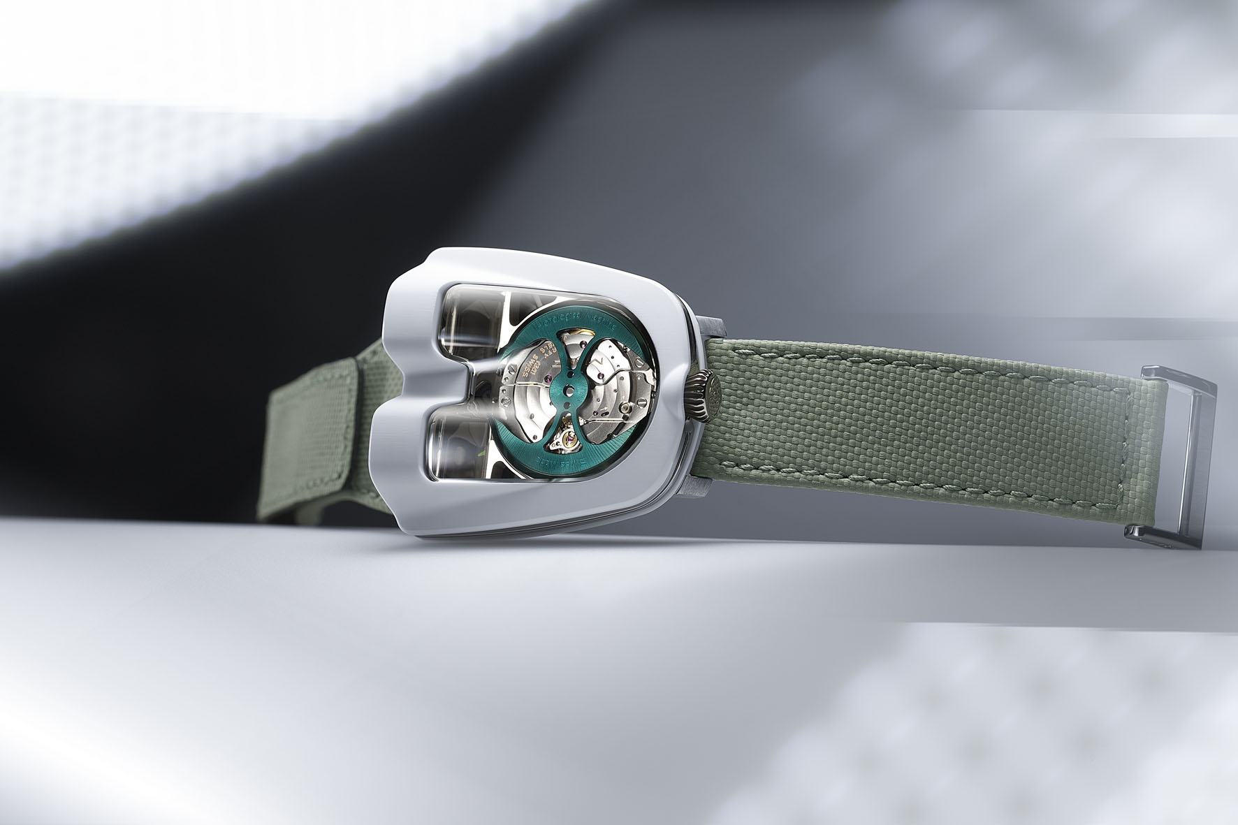 Lo stesso vale per i pannelli della carrozzeria in CarbonMacrolon che, a causa delle quantità di produzione ridotte, potevano essere fresati solo da un unico blocco, aggiungendo un ulteriore livello di complessità alla carrozzeria dell’orologio.