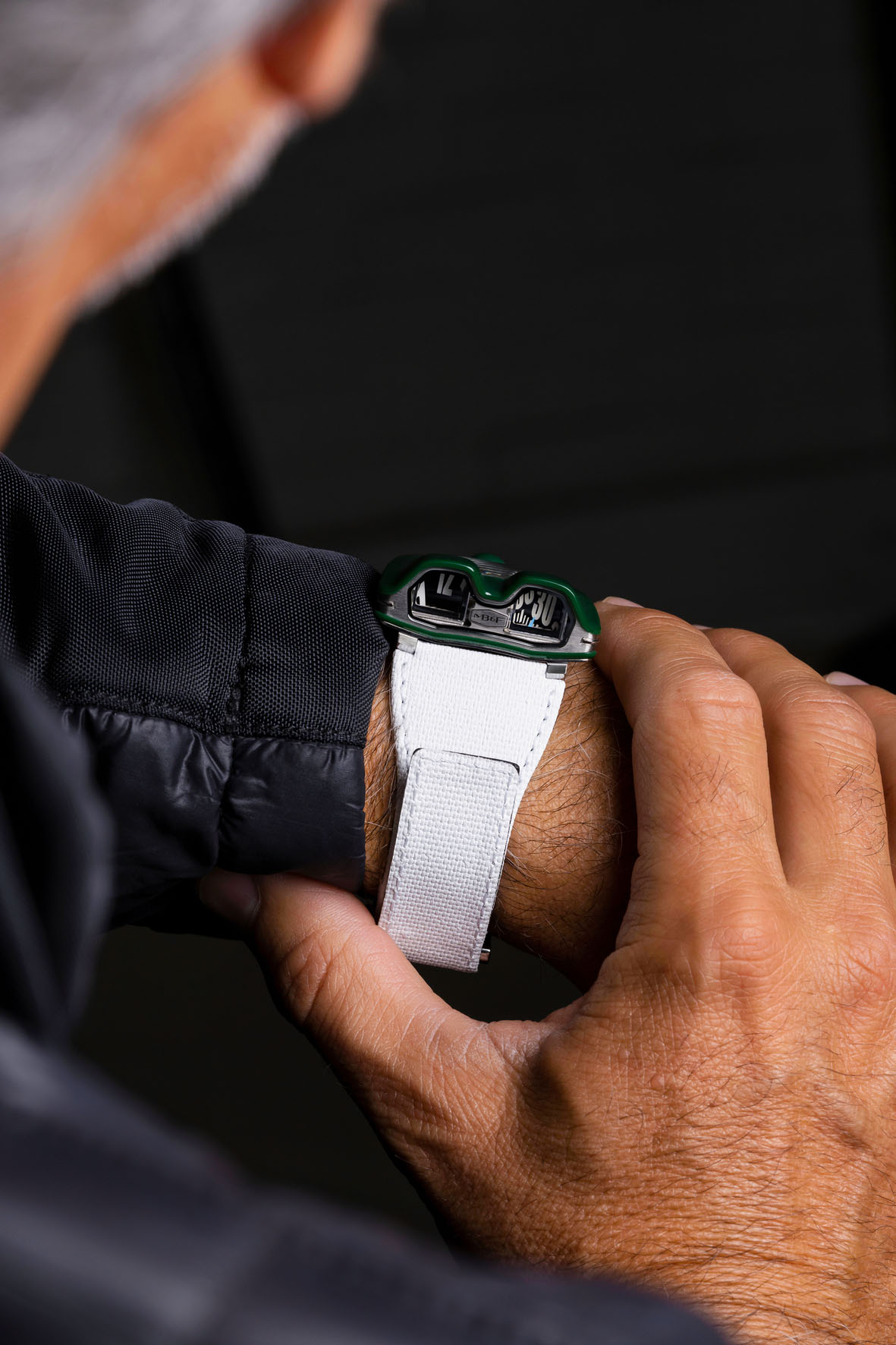 Lo stesso vale per i pannelli della carrozzeria in CarbonMacrolon che, a causa delle quantità di produzione ridotte, potevano essere fresati solo da un unico blocco, aggiungendo un ulteriore livello di complessità alla carrozzeria dell’orologio.
