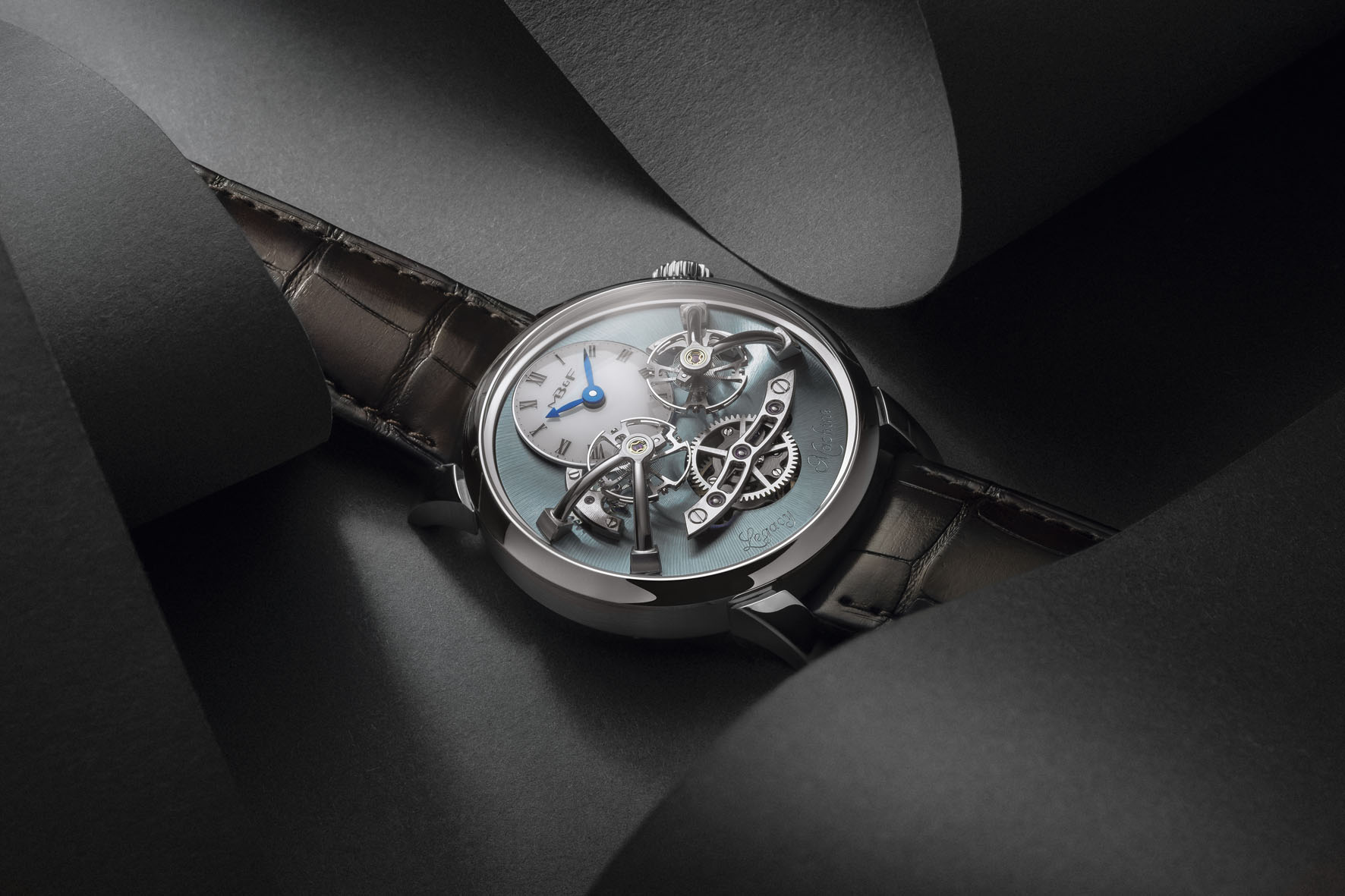 A due secoli e mezzo di distanza, MB&F celebra i tre più grandi pionieri della storia dell’orologeria, unici creatori di orologi con due bilancieri, con la LM2, un orologio i cui due bilancieri restano sospesi al di sopra del movimento.