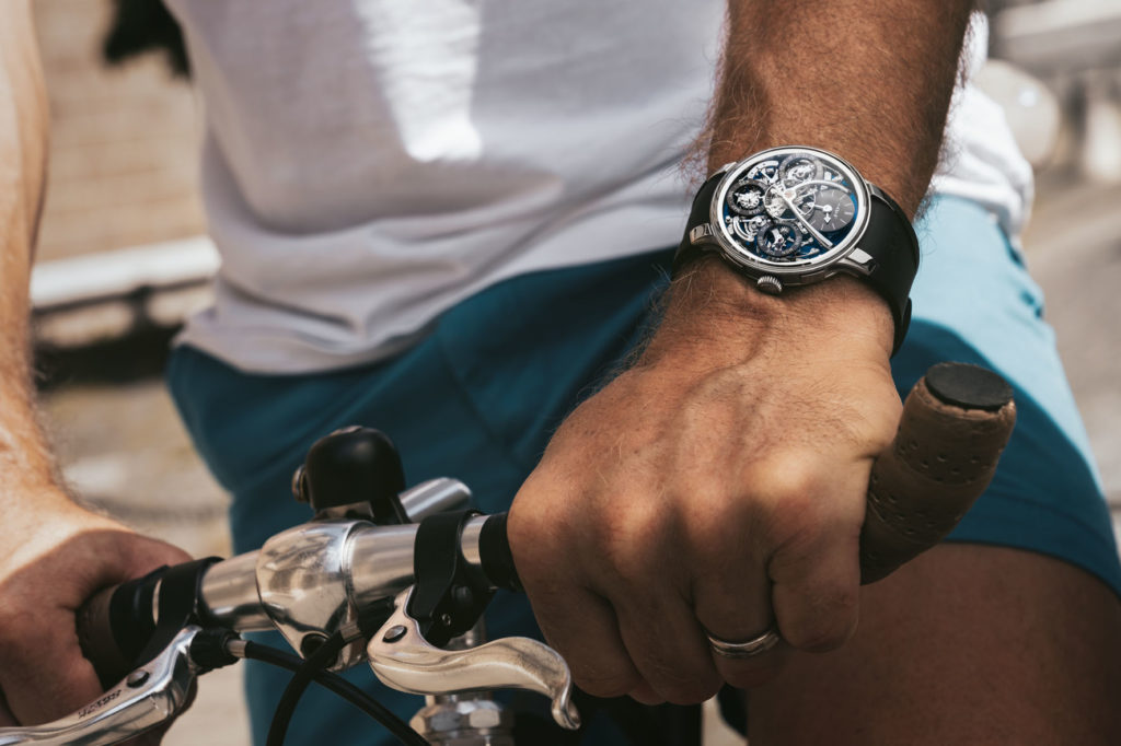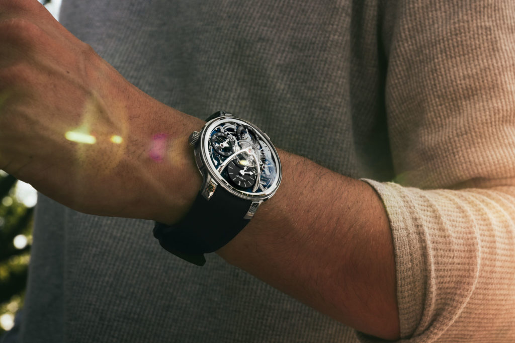 Oggi, a distanza di 5 anni, MB&F si spinge ancora oltre e presenta la LM Perpetual EVO, una nuova Legacy Machine concepita per accompagnarci in qualsiasi situazione. Un orologio “da tutti i giorni” con cassa da 44mm in zirconio, un metallo con proprietà superiori a quelle dell’acciaio e del titanio che MB&F aveva già utilizzato nei modelli HM3 Frog e HM5. Chi è già avvezzo all’inclinazione di MB&F per la sperimentazione dei materiali, sa bene che lo zirconio è una perla rara dell’orologeria. In stato di polvere, lo zirconio si infiamma spontaneamente e di conseguenza la sua lavorazione meccanica è molto pericolosa. Tuttavia, gestendo in modo adeguato i rischi presenti nel processo di lavorazione, le proprietà ipoallergeniche e antimicrobiche dello zirconio, che giustificano la sua diffusione per applicazioni in ambito biomedico, lo rendono il materiale perfetto per un orologio adatto a stili di vita dinamici.