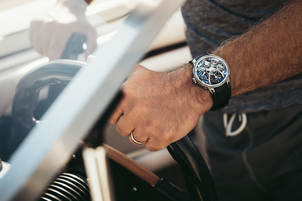 Sono disponibili anche altri due colori del quadrante, nero e blu; ciascuna delle tre tonalità è prodotta in una serie limitata di 15 pezzi, per celebrare il quindicesimo anniversario del marchio. (Prezzo € 142.000 + Iva)