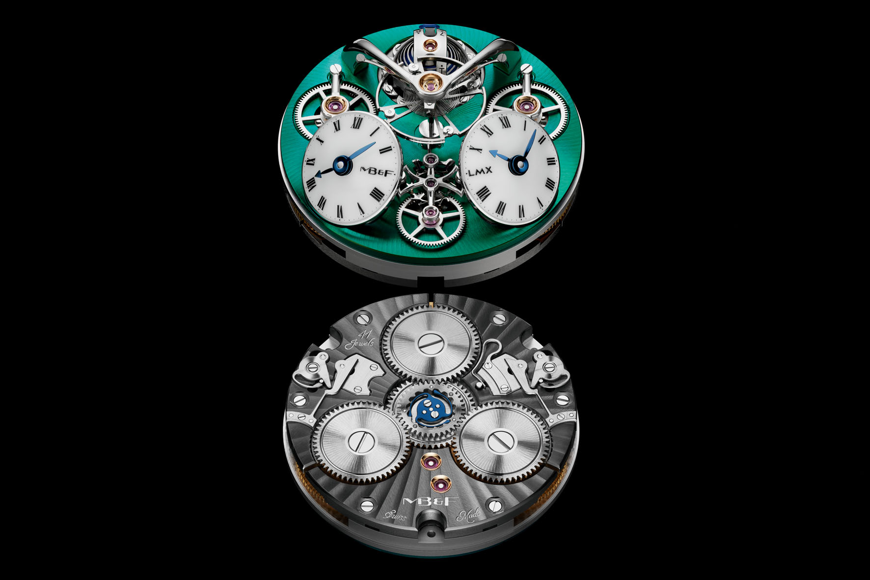 La LMX di MB&F è disponibile in due edizioni di lancio limitate: 18 esemplari in oro rosso 18k con trattamento NAC nero su platine (CHF 112.000 + IVA) e ponti e 33 esemplari in titanio grado 5 con trattamento CVD verde su platine e ponti (CHF 98.000 + IVA).