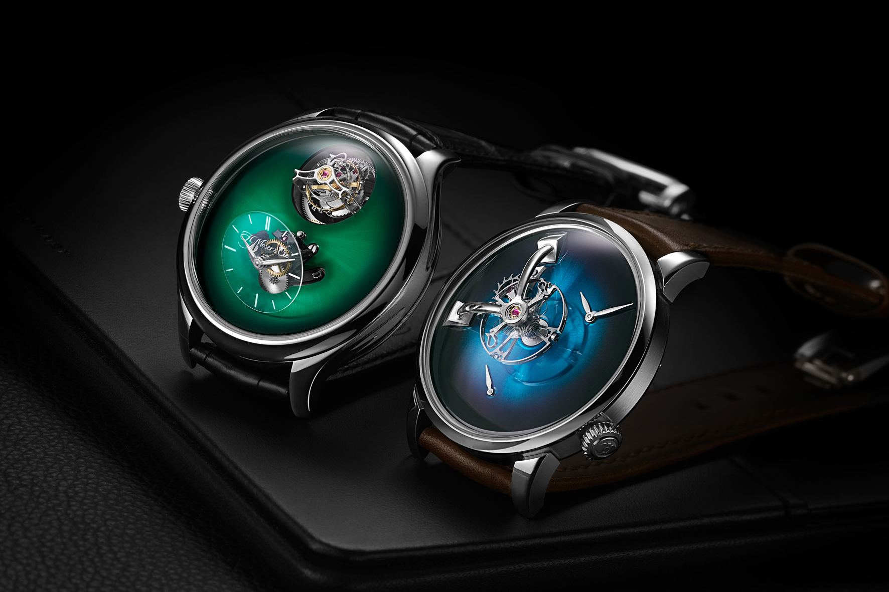Animati dallo spirito di condivisione e dal concetto che l’unione fa la forza, MB&F e H. Moser & Cie. firmano congiuntamente due creazioni che incarnano il connubio perfetto delle loro rispettive peculiarità. Due modelli, disponibili in diverse varianti e proposti in serie limitate di 15 esemplari. Il numero 15 rimanda al 15° anniversario di MB&F e rende omaggio al 15° anniversario del rilancio di H. Moser & Cie.