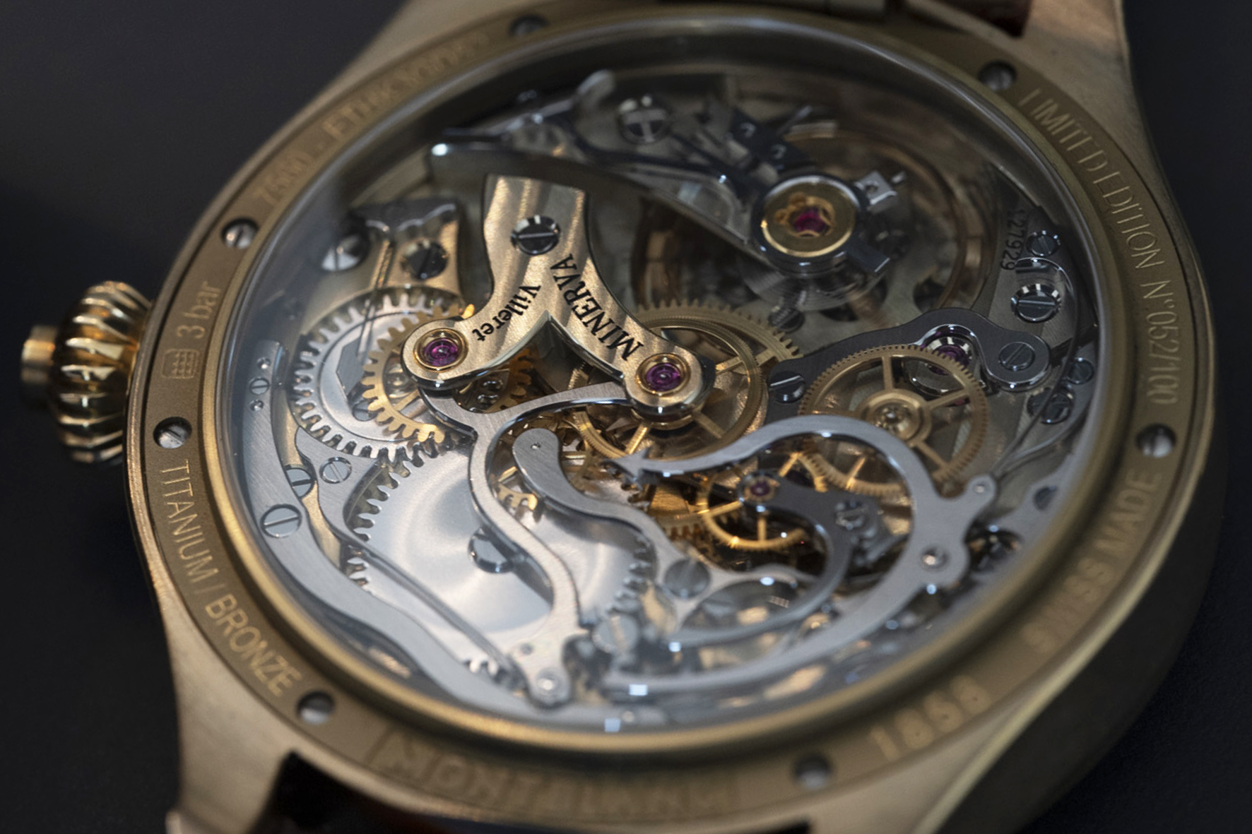 La produzione è limitata a sole 100 unità e all’interno del fondello è incisa la dicitura “Ré-édition du chronographe militaire Minerva des années 1930 doté d’un calibro fait main dans la pure tradition horlogère suisse” (“Riedizione di un cronografo militare Minerva degli anni ’30, dotato di un calibro fatto a mano secondo la pura tradizione orologiera svizzera”).