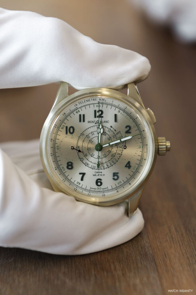 I cronografi monopulsante moderni prodotti da Minerva hanno quasi tutti questa evidente impronta heritage del marchio. Pensiamo al Montblanc 1858 Split Second Chronograph LE 18 del 2021 con cassa in lime gold, o al Montblanc 1858 Monopusher Chronograph Origins Limited Edition 100, omaggio a un cronografo realizzato dalla manifattura negli anni ’30.