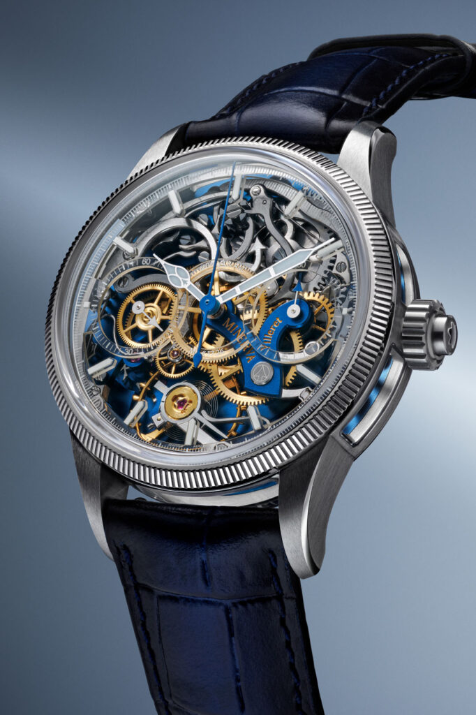 Un approccio sviluppato nel 2022 con il primo 1858 Unveiled Secret Minerva Monopusher Chronograph disponibile in un’edizione limitata a 18 esemplari con cassa in lime gold o di 58 pezzi in acciaio inossidabile. Un orologio che presentava per la prima volta un’iterazione scheletrata dello storico calibro cronografo monopulsante MB 16.29.