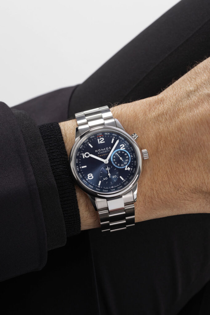 La complicazione “ore del mondo” non è una novità assoluta in casa Nomos. Viene introdotta nel 2011 con lo Zürich World Time che rappresenta tuttora una delle proposte più complete e complesse della manifattura. Nel tempo, lo Zürich World Time è stato declinato in varie versioni, sia continuative che in edizioni limitate. Tra queste, la “True Blue” (nel 2014), la “Singapore Edition” (nel 2017), “Hodinkee Edition” (nel 2018), e le recenti “Beige & Nero” / “Beige & Blu” (~2020). Pur restando un prodotto molto apprezzato da appassionati e collezionisti, lo Zürich World Time ha conservato un’impostazione formale, pensata principalmente per contesti professionali.