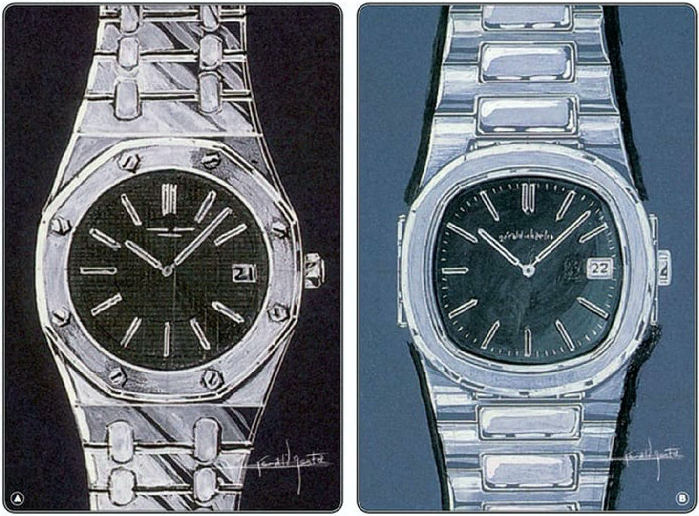Prima del Royal Oak, la manifattura di Le Brassus aveva creato solo orologi eleganti e complicati, tutti in metalli preziosi, ma si affidò all’esperienza di Gay Frères con i metalli non preziosi per il design del primo bracciale integrato sul suo sportivo per eccellenza. Lo stesso accadde, qualche anno dopo, quando Patek Philippe lanciò il Nautilus. Un caso che per entrambi gli orologi, oltre alla firma di Gerald Genta, ci fosse lo stesso fornitore di bracciali?