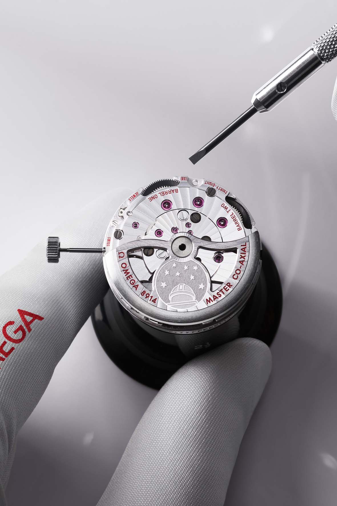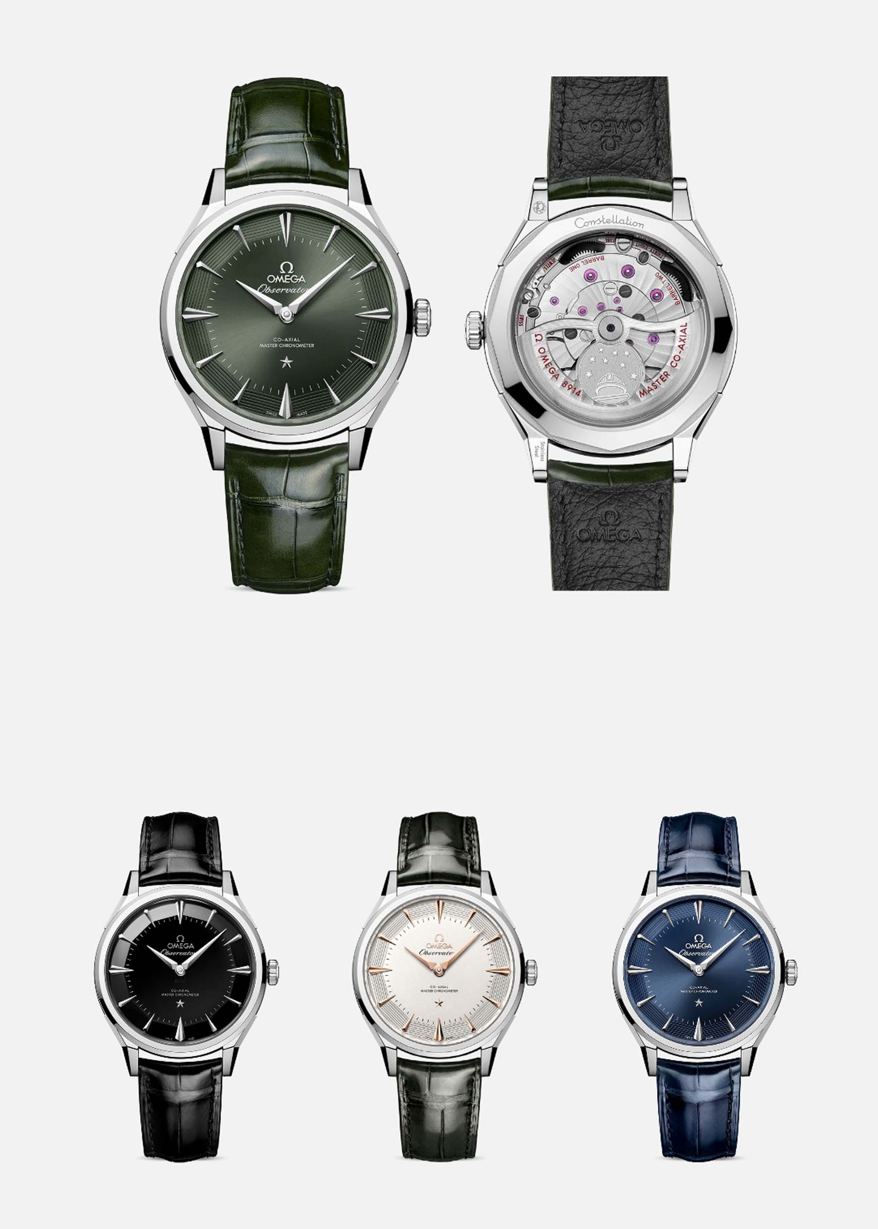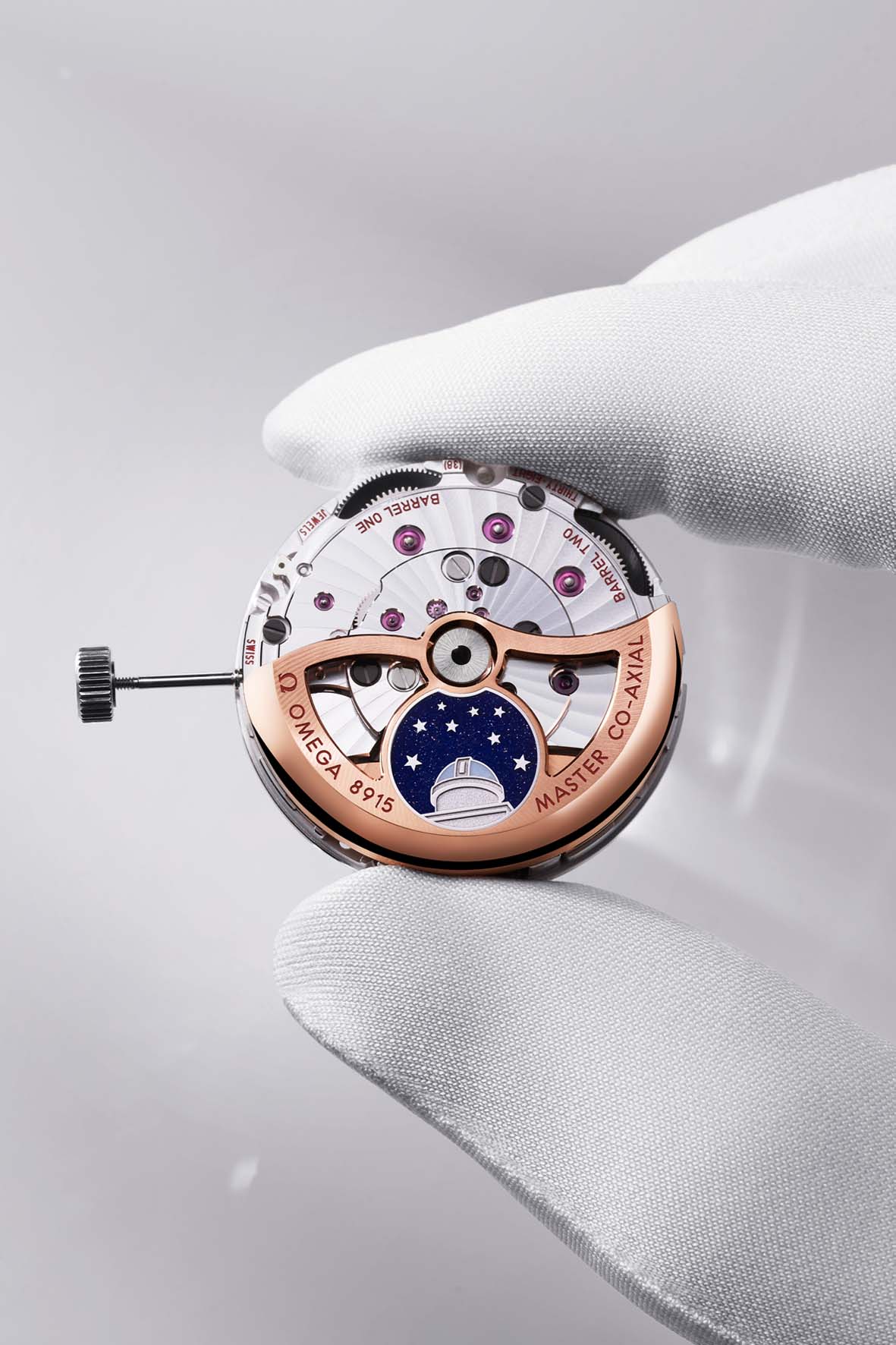 La collezione introduce due nuovi calibri automatici Master Chronometer con 60 ore di riserva di carica, costruiti su una base comune ma differenziati nelle finiture e nei materiali. Il Calibro 8915 è destinato alle versioni in oro, mentre il Calibro 8914 anima le referenze in O-MEGASTEEL, mantenendo la stessa architettura ma con una finitura rodiata.