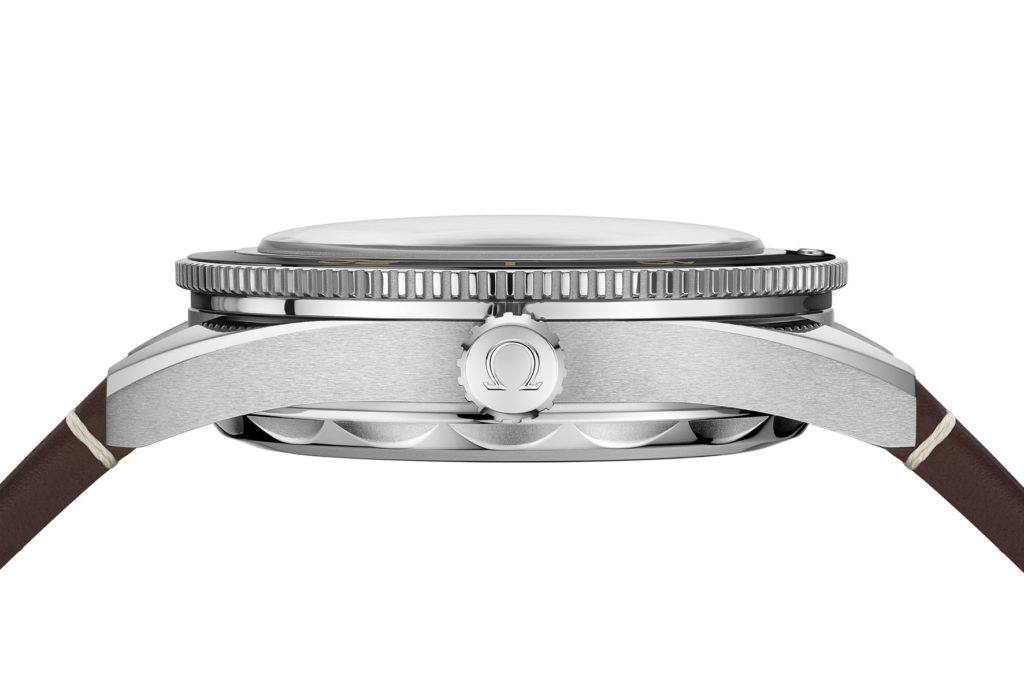 Ma non è tutto… I più attenti noteranno che la sottile cornice interna ha dato al quadrante una maggiore visibilità, con un’apertura di 30,4 mm, rispetto ai precedenti 29,5 mm. Inoltre, OMEGA ha ottenuto un Seamaster 300 leggermente più sottile grazie a un nuovo vetro zaffiro bombato sul quadrante dell’orologio. Questo aspetto più sottile è migliorato dall’aggiunta di una nuova corona conica sul lato della cassa.