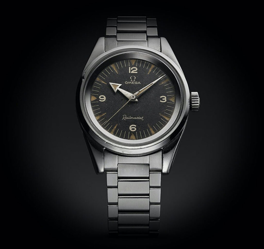 Brevemente, ricordiamo che nel 1957 Omega presentò una trilogia di orologi pensati per differenti categorie professionali: Il Seamaster (che in realtà risale al 1948, anche se non si trattava di un vero e proprio Seamaster fino al 1957, quando il marchio lanciò il Seamaster 300), lo Speedmaster e, appunto, il Railmaster. Con questo trio, Omega pensò ai subacquei, ai piloti e a chi lavorava nelle ferrovie, poiché il Railmaster era una sorta di mix tra un orologio da ferroviere, uno da ingegnere e uno da scienziato.