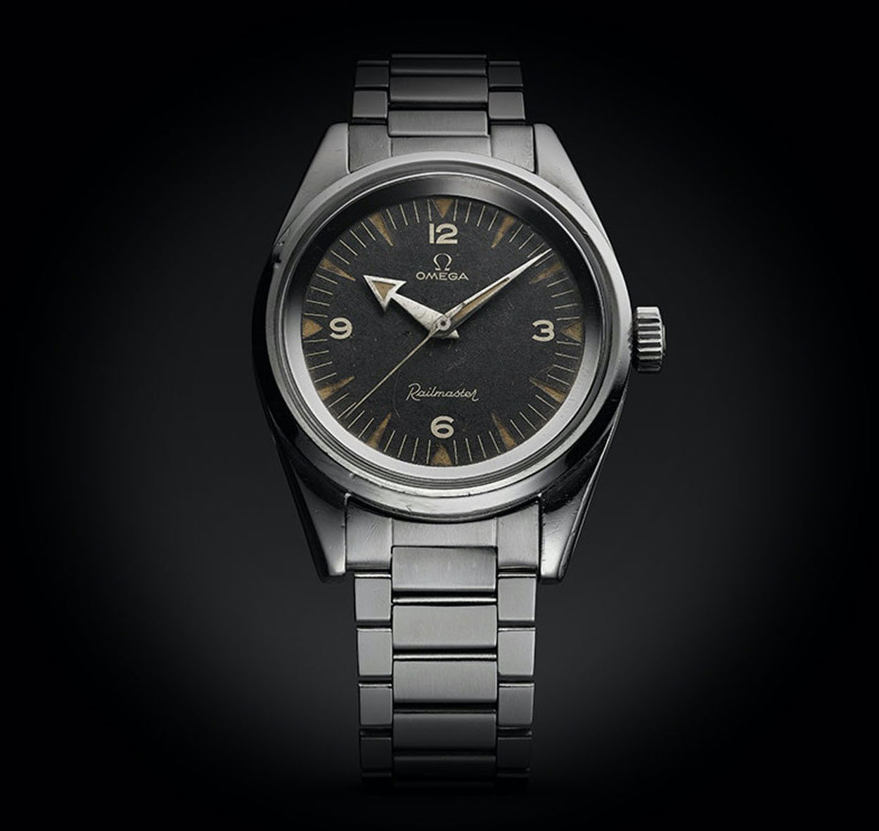 Il Railmaster delle origini presentava una combinazione di numeri arabi, indici a freccia e una lancetta anch’essa a freccia che era caratteristica anche dello Speedmaster e del Seamaster 300 dell’epoca. Il bracciale aveva una serie di maglie interne spazzolate e una parte esterna lucida. Era distinto dalla referenza CK2914 ed era dotato di una gabbia di Faraday che gli consentiva di resistere a campi magnetici fino a 1.000 gauss, per ovviare a possibili situazioni cui avrebbe potuto andare incontro chi lo indossava durante il lavoro.