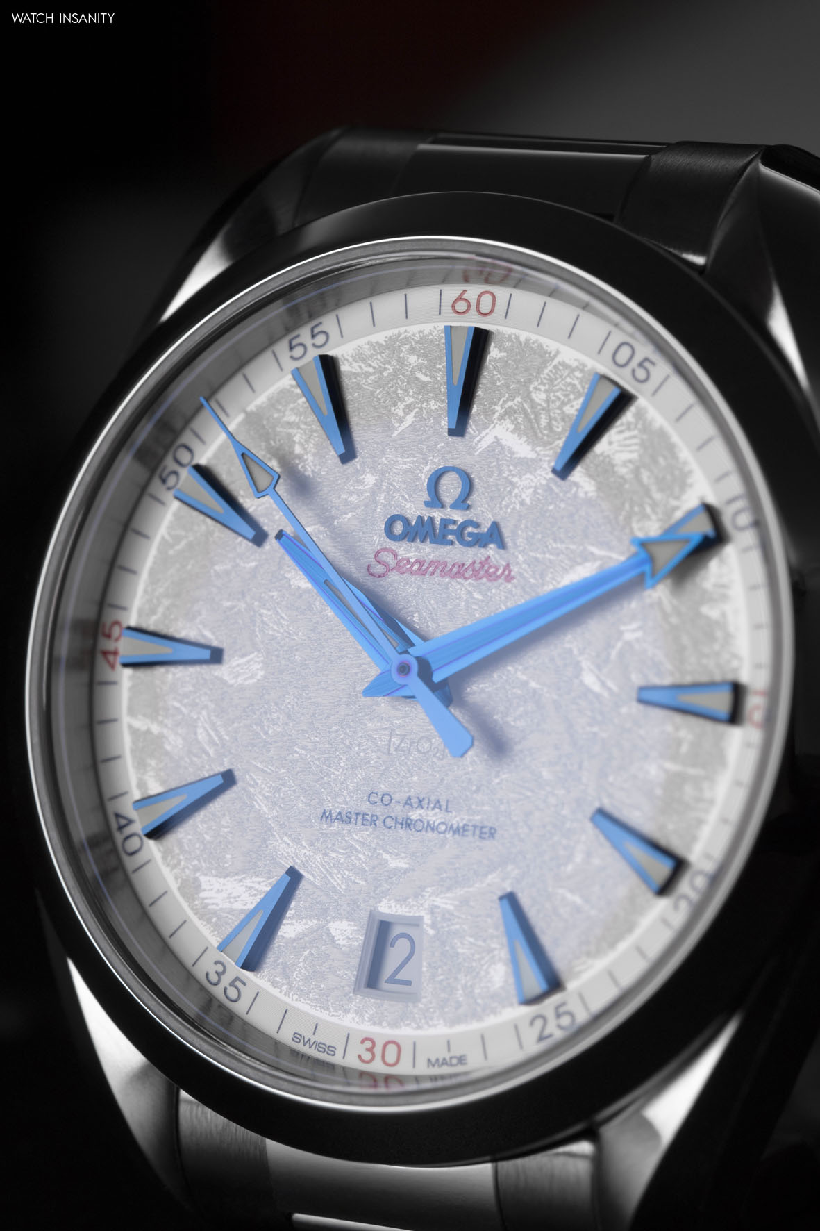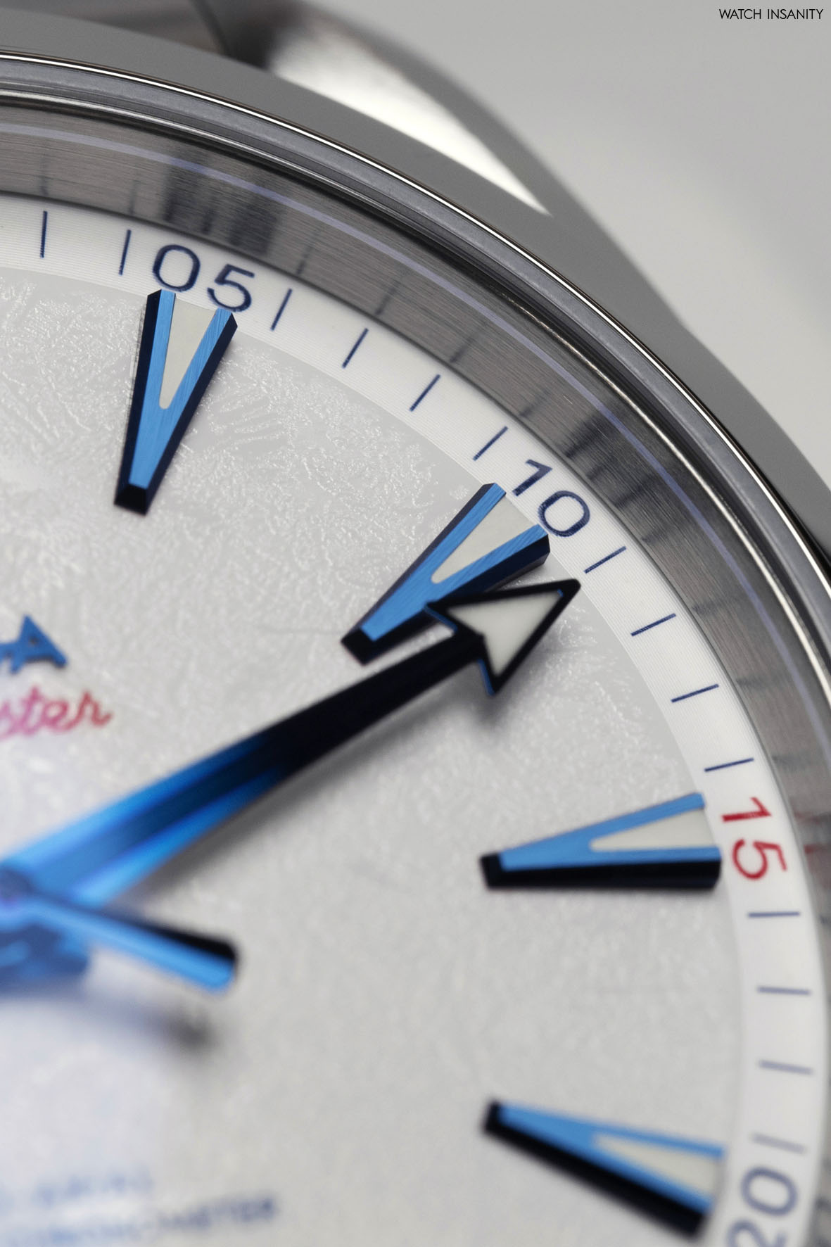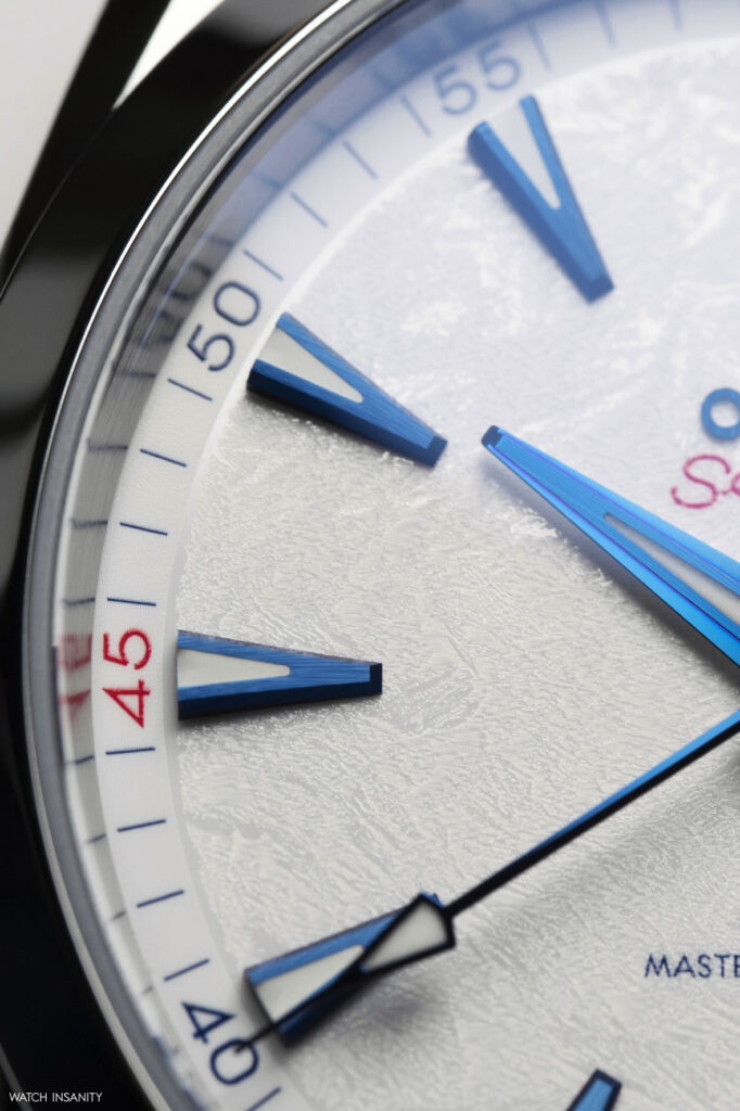 Si tratta essenzialmente di una versione “ghiacciata” dell’Aqua Terra 150M, in virtù del suo quadrante bianco tipo “frosted”, inciso al laser su una base in ceramica bianca. Vuole riprodurre il motivo del ghiaccio, legando strettamente l’orologio alle Olimpiadi invernali; questa scelta ha escluso l’utilizzo delle strisce verticali che richiamano i ponti in teak delle barche e che sono caratteristiche della collezione Aqua Terra.