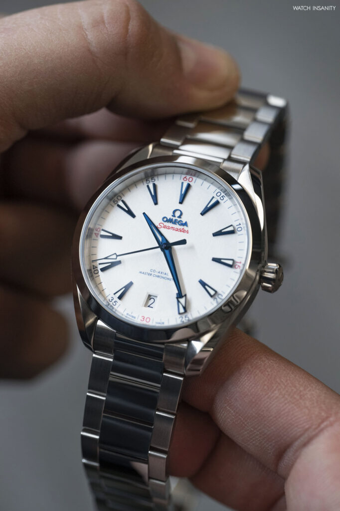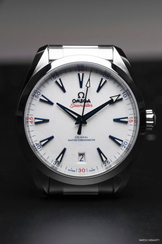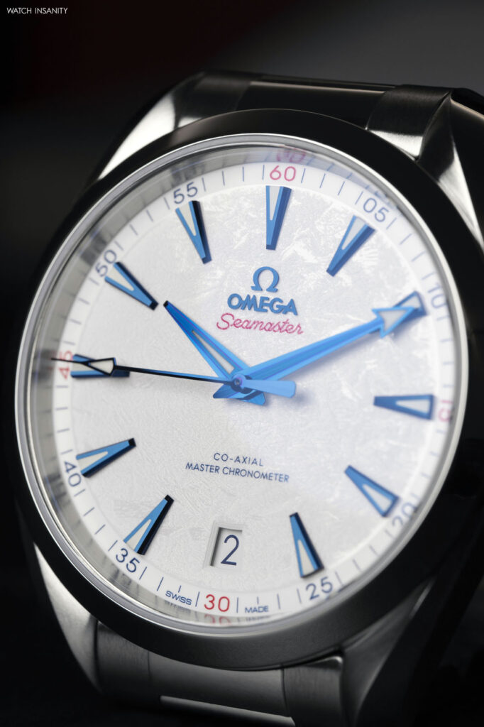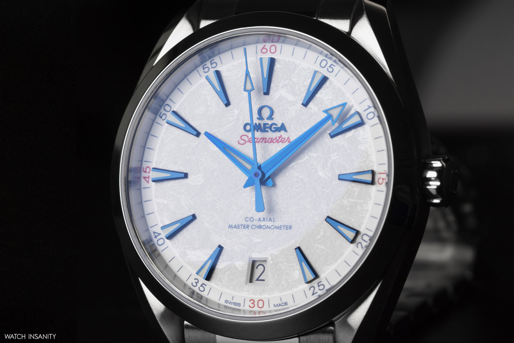 Si tratta essenzialmente di una versione “ghiacciata” dell’Aqua Terra 150M, in virtù del suo quadrante bianco tipo “frosted”, inciso al laser su una base in ceramica bianca. Vuole riprodurre il motivo del ghiaccio, legando strettamente l’orologio alle Olimpiadi invernali; questa scelta ha escluso l’utilizzo delle strisce verticali che richiamano i ponti in teak delle barche e che sono caratteristiche della collezione Aqua Terra.
