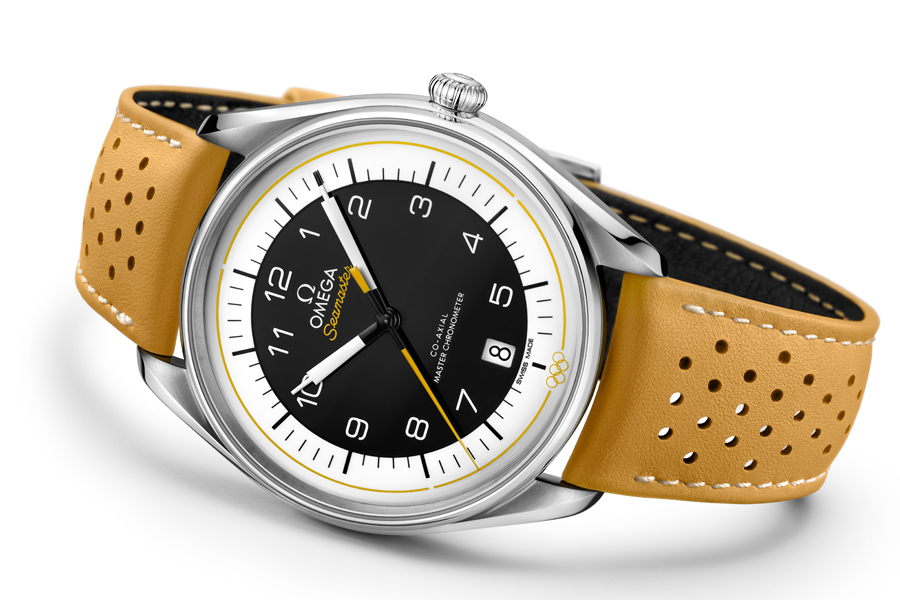La collezione rappresenta i cinque colori degli anelli Olimpici, con modelli che saranno disponibili in nero, giallo, verde, blu e rosso. La collezione “Olympic Games” ha preso ispirazione da diversi cronografi legati alla storia del cronometraggio Omega, in particolare da quelli usati nel 1976 a Montreal e Innsbruck. Questo dettaglio è visibile sui quadranti bombati neri e bianchi di ogni orologio che sono disegnati per essere letti a colpo d’occhio e caratterizzati da lancette sportive e dagli indici delle ore neri, in netto contrasto con la traccia dei minuti posta su un cerchio esterno bianco. Per enfatizzare lo spirito sportivo di questi orologi è stato aggiunto un lettore di pulsazioni colorato che circonda il quadrante, con 3 intervalli di 20 secondi, per permettere a chi lo indossa di calcolare con facilità i battiti al minuto.